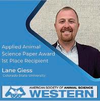 Giess was also a contributing author on the third place WSASAS Applied Animal Science Research Award, where Miranda Zuvich was recognized for her research: Evaluating repeatability and scorer differences when assigning feet and leg scores in Simmental heifers.