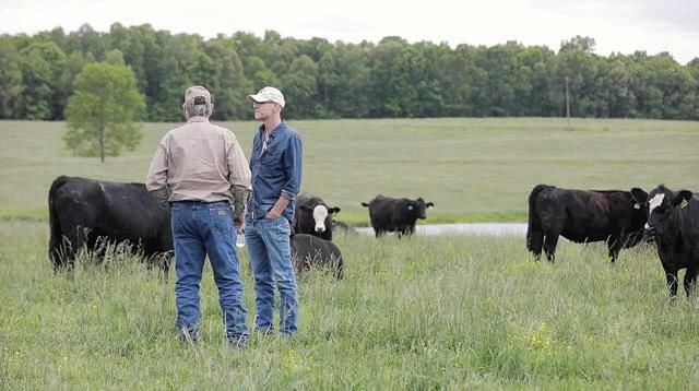 L: Father–son team Neil and Chris Martin share responsibilities on the family farm. R: Tennessee’s long growing season and adequate rainfall makes it a productive place to run cattle.