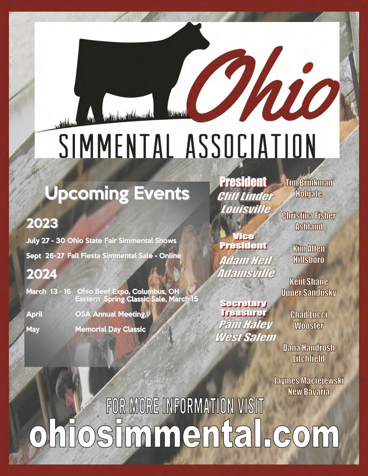 Minnesota Clear Springs Cattle Co.. . . . . . . . . . . . . . . . 86 Eberspacher Enterprises Inc.. . . . . . . . . . . . IBC Four Point Livestock. . . . . . . . . . . . . . . . . . . 86 K-LER Cattle. . . . . . . . . . . . . . . . . . . . . . . . . 87 Lynch Farms Lone Oak Beef. . . . . . . . . . . . . 87 Minnesota Simmental Association. . . . . . . . 85 Mississippi Ishee Bred Simmentals. . . . . . . . . . . . . . . . . 92 Mississippi-Dixie National Simmental Sale. . . . . . . . . . . . . . 91 Mississippi Simmental Simbrah Association. . . . . . . . . . . . . . . . . . . . . . . . 91 Rockhill Ranch. . . . . . . . . . . . . . . . . . . . . . . . 92 Missouri American Royal. . . . . . . . . . . . . . . . . . . . 95, 97 Lee Simmental Farms. . . . . . . . . . . . . . . . . . 99 Lucas Cattle Company. . . . . . . . . . . . . . . . 204 Missouri Simmental Association. . . . . . . . . . 95 Oval F Ranch. . . . . . . . . . . . . . . . . . . . . . . . 100 RS&T Simmentals. . . . . . . . . . . . . . . . . . . . 101 Shoal Creek Land & Cattle, LLC. . . . . . . . . 101 Montana 3H Simmental Ranch. . . . . . . . . . . . . . . . . . 102 Begger’s Diamond V. . . . . . . . . . . . . . . . . . 105 Bulls of the Big Sky. . . . . . . . 28, 103, 104, 107 Data Genie. . . . . . . . . . . . . . . . . . . . . . . . . . 104 Diamond Bar S. . . . . . . . . . . . . . . . . . . . . . . 104 Gateway Simmental & Lucky Cross. . . . . . . 102 Hill’s Ranch Simmentals. . . . . . . . . . . . . . . 104 Lassle Ranch Simmentals. . . . . . . . . . . . . . 105 Miller Simmental. . . . . . . . . . . . . . . . . . . . . 104 Montana Simmental Association. . . . . . . . . 103 Nelson Livestock Company. . . . . . . . . 104, 107 ORIgen. . . . . . . . . . . . . . . . . . . . . 106, 127, 159 Prickly Pear Simmental Ranch. . . . . . . . . . . 106 Thomas Livestock Services. . . . . . . . . . . . . 127 Western Choice. . . . . . . . . . . . . . . . . . . 28, 103 Nebraska J&C Simmentals. . . . . . . . . . . . . . . . . . . . . 111 Nebraska Simmental Association. . . . . . . . 109 Sandy Acres Simmental. . . . . . . . . . . . . . . . 113 Trauernicht Simmentals. . . . . . . . . . . . . . . . 113 Triangle J Ranch. . . . . . . . . . . . . . . . . 110, 196 Western Cattle Source. . . . . . . . . . . . . . . . . 116 New York New York Simmental Association. . . . . . . . 119 Simme Valley. . . . . . . . . . . . . . . . . . . . . . . . 118 North Carolina Carolina Classic Fair. . . . . . . . . . . . . . . . . . 121 Fred Smith Commpany Ranch. . . . . . . . . . 120 North Carolina Simmental Association. . . . 121 North Carolina State Fair. . . . . . . . . . . . . . . 121 North Dakota 701x® Autonomous Rancher® . . . . . . . . . . . 125 Bata Brothers. . . . . . . . . . . . . . . . . . . . . . . . 122 Bichler Simmentals. . . . . . . . . . . . . . . . . . . 122 C Diamond Simmentals. . . . . . . . . . . . . . . . 124 Crosshair Simmental. . . . . . . . . . . . . . . . . . 124 Doll Simmental Ranch. . . . . . . . . . . . . . . . . 124 Edge of the West. . . . . . . . . . . . . . . . . 126, 127 Ellingson Simmentals. . . . . . . . . . . . . . . . . 124 Kaelberer Ranch. . . . . . . . . . . . . . . . . . . . . 126 Keller Broken Heart Ranch. . . . . . . . . . . . . 126 Kenner Simmentals. . . . . . . . . . . . . . . . . . . 126 Klain Simmental Ranch. . . . . . . . . . . . . . . . 126 Kunkel Simmental Ranch. . . . . . . . . . . . . . . 126 North Dakota Junior Simmental Association. . . . . . . . . 123 North Dakota Simmental Association. . . . . 123 Quandt Brothers Cattle Company. . . . . . . . 127 SRF Simmentals. . . . . . . . . . . . . . . . . . . . . 127 Thomas Livestock Services. . . . . . . . . . . . . 127 TNT Simmental Ranch. . . . . . . . . . . . . . . . . 127 Triple H Simmentals. . . . . . . . . . . . . . . . . . . 128 xBase. . . . . . . . . . . . . . . . . . . . . . . . . . . . . . 125 xTLite™. . . . . . . . . . . . . . . . . . . . . . . . . . . . 125 xTPro™. . . . . . . . . . . . . . . . . . . . . . . . . . . . 125 xWatsen. . . . . . . . . . . . . . . . . . . . . . . . . . . . 125 Ohio Ohio Simmental Association. . . . . . . . . . . . 129 Select Sires. . . . . . . . . . . . . . . . . . . . . . . . . . 11 Stanfield Farms. . . . . . . . . . . . . . . . . . . . . . 135 Oklahoma Bricktown Classic. . . . . . . . . . . . . . . . . . . . 201 Oklahoma Simmental Simbrah Association. . . . . . . . . . . . . . . . . . . . . . . 137 Updyke Simmentals. . . . . . . . . . . . . . . . . . . 140 Willis Simmentals. . . . . . . . . . . . . . . . . . . . . 141 Pennsylvania American Embryo Transfer Association. . . . 144 CLO Simmentals. . . . . . . . . . . . . . . . . . . . . 142 Kulp Genetics. . . . . . . . . . . . . . . . . . . . . . . 144 Pennsylvania Simmental Association. . . . . 143 South Dakota 3C Christensen Ranch. . . . . . . . . . . . . . . . . 149 B&B Simmental Cattle. . . . . . . . . . . . . . . . . 146 C-Lock Inc.. . . . . . . . . . . . . . . . . . . . . . . . . . 20 CK Cattle. . . . . . . . . . . . . . . . . . . . . . . . . . . 146 Double J Farms. . . . . . . . . . . . . . . . . . . . . . 146 Eichacker Simmentals. . . . . . . . . . . . . . . . . 146 Ekstrum Simmentals and SimGenetics. . . . 148 Hart Simmentals. . . . . . . . . . . . . . . . . . . . . 148 M/S Stavick Simmental. . . . . . . . . . . . . . . . 150 NLC Simmental Ranch. . . . . . . . . . . . . . . . 149 R&R Cattle Company. . . . . . . . . . . . . . . . . . 151 S/M Fleckvieh Cattle. . . . . . . . . . . . . . . . . . 151 South Dakota Simmental Association. . . . . 147 Stavick Simmental. . . . . . . . . . . . . . . . . . . . 150 Traxinger Simmental. . . . . . . . . . . . . . . . . . 151 Wager Cattle. . . . . . . . . . . . . . . . . . . . . . . . 146 Tennessee Beech Mile Farm. . . . . . . . . . . . . . . . . . . . . 159 Ivie & Son’s Simmentals. . . . . . . . . . . . 158, 201 Martin Farms. . . . . . . . . . . . . . . . 158, 159, 161 Red Hill Farms. . . . . . . . . . . . . . . . . . . . . . . 162 Running Springs Catt