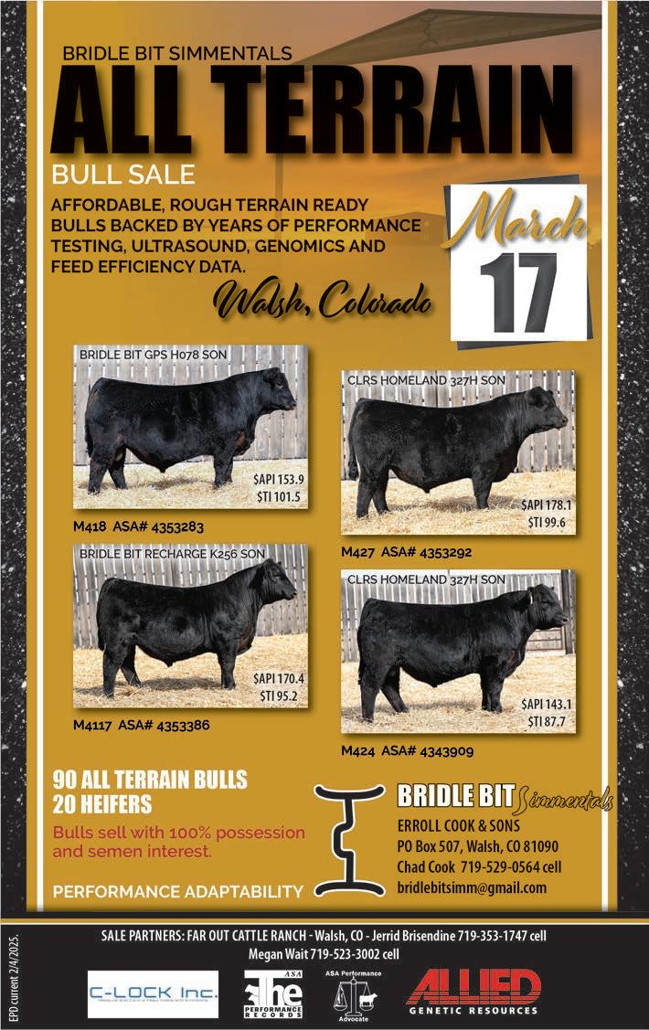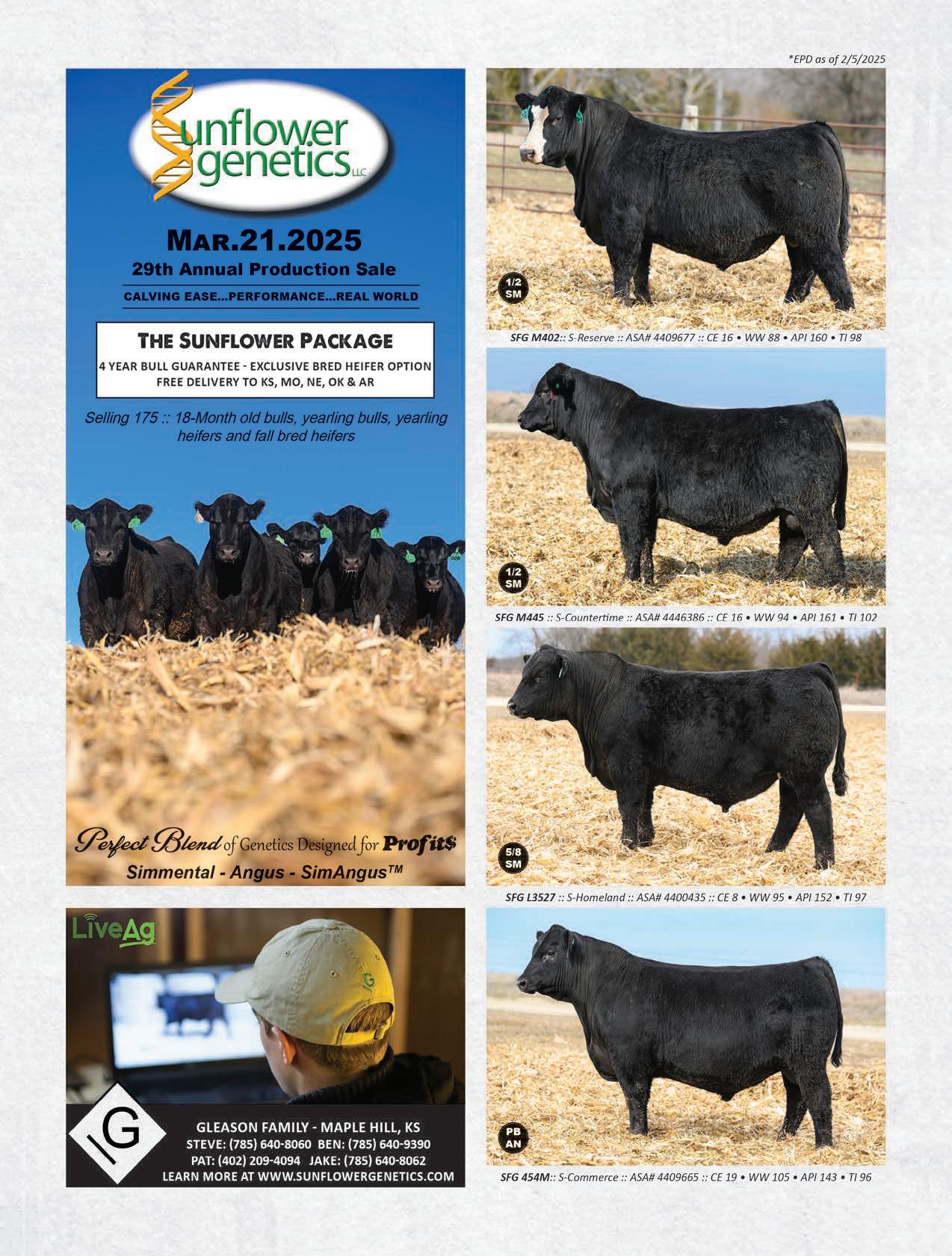 26 Cow Camp Ranch’s Spring Turn-Out Sale — Lost Springs, KS (pgs. 47, 77)