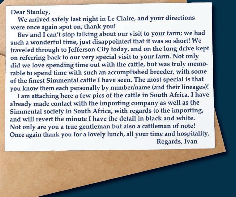 This is a follow-up letter that we received from our visitors from South Africa. After seeing the quality results from their first importation, (semen and embryos sired by Golden Dawn No Doubt), they have placed a second and larger order.