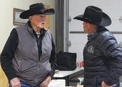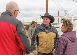 Shane Temple (right), T-Heart Ranch, visits with a customer prior to the sale.