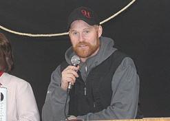 Matt Hoffman greets a large crowd despite the snowstorm overnight.