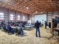 Chad Cook (right) welcomes the crowd to the family’s sale.