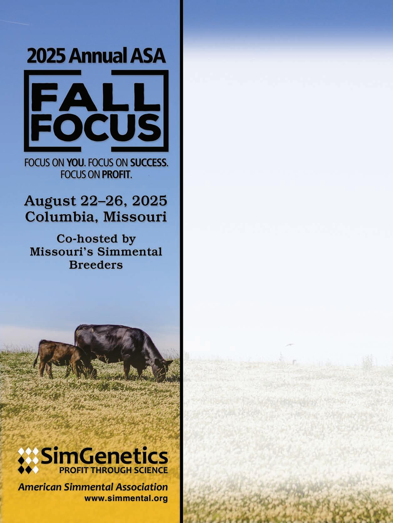 in on some board meetings and learn about the process. This year’s Fall Focus will be held in Columbia, Missouri, and will be co-hosted by the Missouri Simmental Association. My time on the ASA Board of Trustees has opened my eyes — I have learned so much and have made lifelong friends. I have worked with some excellent chairmen, including Barry Wesner, Doug Parke, and Chris Ivie. This past January the gavel was passed to Mr. Victor Guerra, and I’m excited for him to lead our board. In closing, I would like to extend my gratitude to Dr. Wade Shafer and Chip Kemp for your efforts and contributions to the American Simmental Association and the beef industry. I wish you all the best in your future endeavors. Stand Strong. .