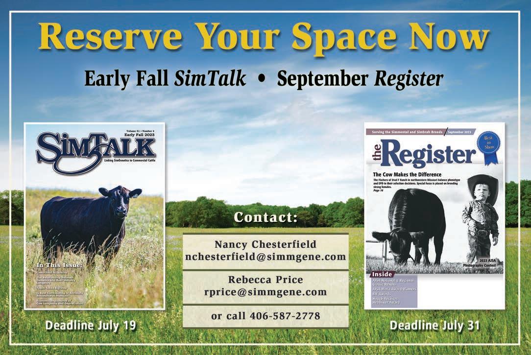 One Genetics Way, Bozeman, Montana 59718 USA 406-587-2778 fax: 406-587-9301 www.simmental.org email: register@simmgene.com Canada Publications Agreement Number: 1875183