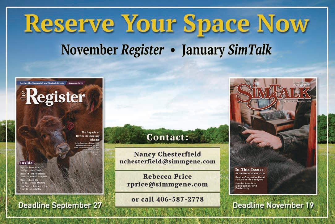 As I write this, we’re looking ahead to staying in the South Central region for Fall Focus in Amarillo, Texas, August 23–27, 2024. Fall Focus is also one of ASA’s premiere events and is shaping up to be another fun and educational gathering for beef producers in the setting of the Texas Panhandle. ASA Board of Trustee meetings are also scheduled after the conference, and we invite you to stay and join us as we discuss the business of the Association. Speaking of business, the demand for SimGenetics appears to have remained strong since my last Trustee Viewpoint as sale reports trickled into the Register from across the country. Personally, I attended the Back to Grass Sale in Henderson, Texas, this past spring and the diverse SimGenetic offering was well received by an enthusiastic crowd. Congratulations to y’all on creating this strong consumer demand for SimGenetics that we are currently experiencing, and I wish your operation continued success.
