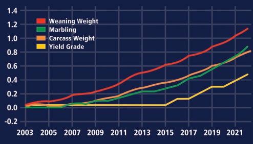 progeny records for growth traits, and 10 for terminal traits. This data will help young producers make breeding decisions, and will also have a positive impact on the entire population. “Animals that receive genomically enhanced prediction drastically improve the accuracy of their expected progeny differences (EPD) values, which in show cattle is generally a challenge due to smaller contemporary groups and fewer registered progeny,” Giess explained.