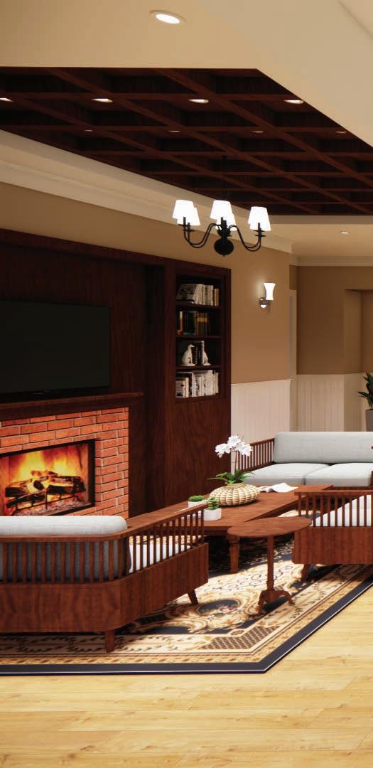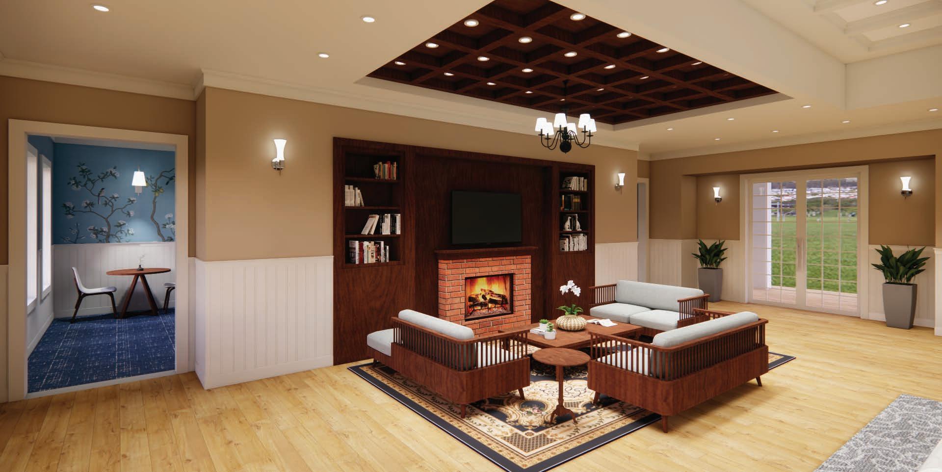 Description: This clubhouse was designed in a traditional style, with a layout that emphasizes symmetry and organizes spaces by function. Restrooms, MEP, and storage closets are placed together, while the pool equipment room and staff breakroom are located side by side for efficiency. In the Great Room, wainscoting highlights the grand scale, paired with warm wood flooring. Carpet is used in the Game Room and corridor to create a softer, quieter feel. The design balances harmony and variety by using different lighting fixtures for each space, while keeping a consistent traditional style throughout.