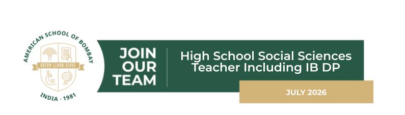 The American School of Bombay (ASB) seeks an innovative and collaborative High School Social Sciences teacher with a growth mindset to join our team of international educators The teacher will design inclusive, student-centered learning experiences that promote inquiry, critical thinking, and global citizenship The role includes teaching IB Diploma classes and aligning instruction with IB standards through culturally responsive, interdisciplinary, and inquiry-based approaches that foster students’ intellectual and social-emotional growth