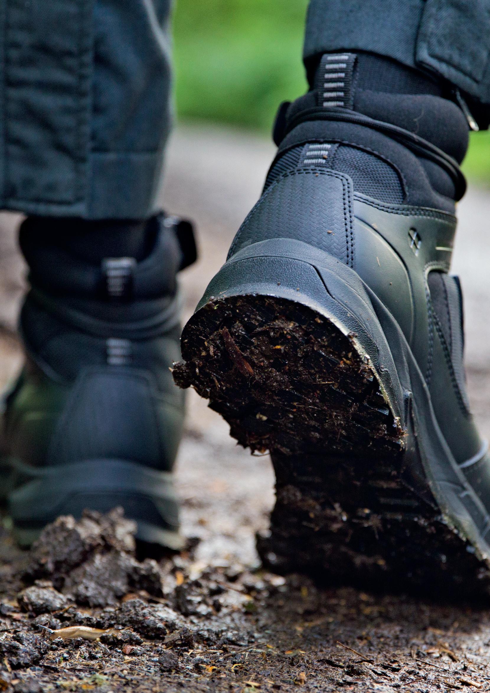Large lugs on the front of the shoe can cause a trip hazard. Hence, we developed TripGuard: Thanks to the slight bend and narrow lug profile, you can easily move between slippery surfaces, carpets and runners.