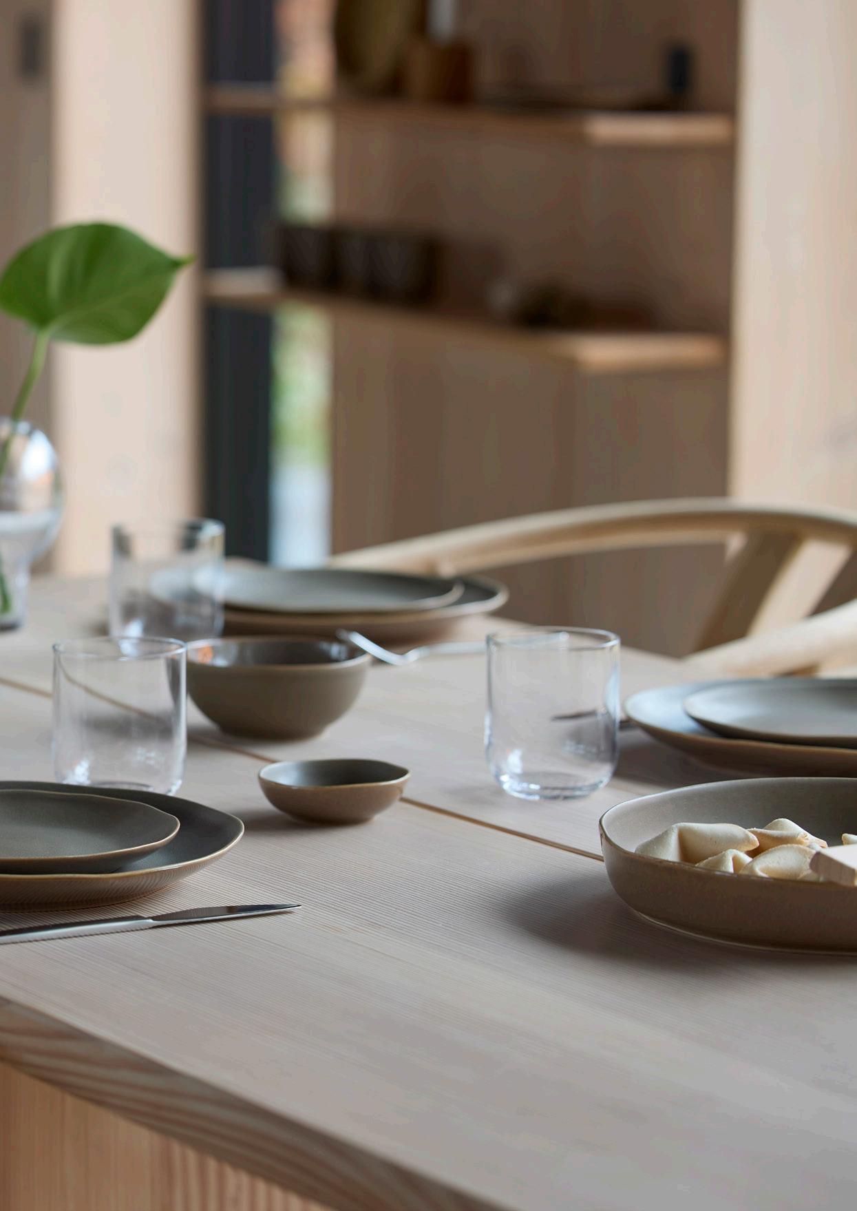 Soft beige is a warm and inviting colour with a soft muted tone that exudes calm and balance. The subtle and natural expression of the colour reflects a focus on japandi minimalism and functionality, making it ideal for creating a sense of comfort and cohesion around the dining table.