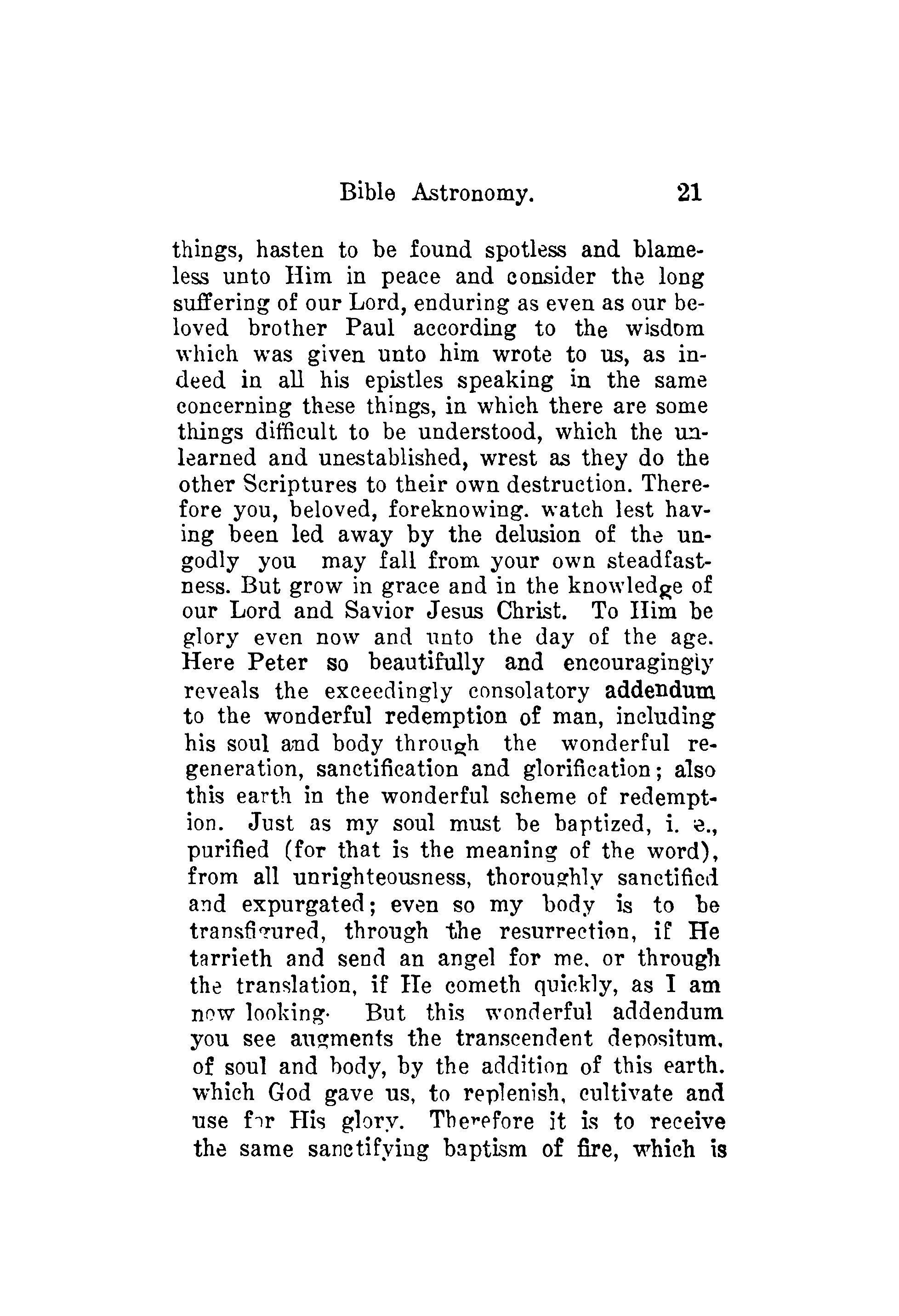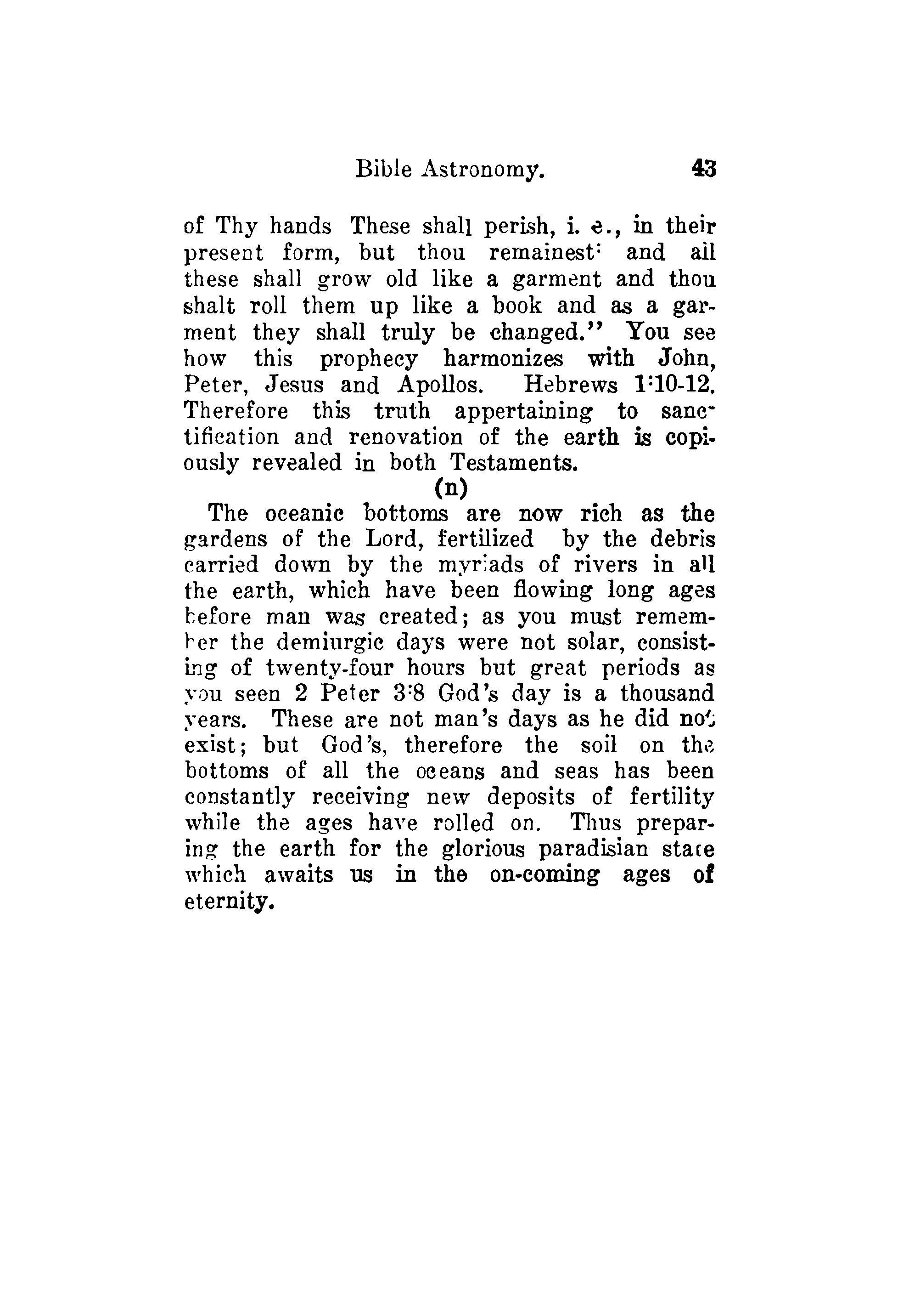 C ea i n Of he S la S em. In he beginning G d c ea ed he hea en and he ea h. Gen. 1:1. Wea e n inf m ed hen hi c ea i n k lace. The la idea ha i a i h and ea ag i e l n enable. The Heb e d m, mean a e i d f ime, and n im l en f h da . D n f ge hi bel ed, ha , " ne da i h he L d i a a h and ea , and a h and ea a ne da ." 2 Pe e 3 :8. N ee G d' da i n he h ace f en -f h , b a h and ea . N. B.-Thi i n be nde d a defini e, b an indefini e e e i n f a l ng e i d f ime. S fa a defini e e i d a e c nce ned, e h ld emembe ha ch n l gie a , he ef e he m n a aigh jacke n he d f G d. The h he i f he e demi gic da e ic ed en -f h , i n enable, beca e in ha ca e he ld be la da . he ea he n i n men i ned ill he f h da . The ef e ee he fi f c ld n ha e been la da , a he e a n n i ible mea e hem. Since he ame d m e eal all he e en da , c n i ing he fi eek, and he fi f e e n la da , mea ed f m n n, i f ll a a l gical c n e ence, ha n ne f he e en e e la . I i i i el a ed ha , ha in fini hed he k in he i da , G d e ed n he e en h da . D 7