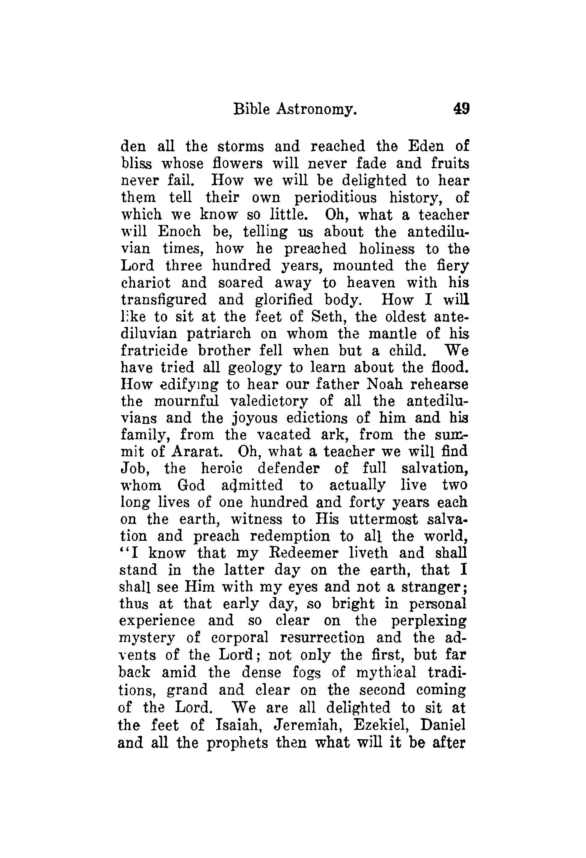 den all he m and eached he Eden f bli h e fl e ill ne e fade and f i ne e fail. H e ill be deligh ed hea hem ell hei n e i di i hi , f hich e kn li le. Oh, ha a eache ill En ch be, elling ab he an edil ian ime , h he eached h line he L d h ee h nd ed ea , m n ed he fie cha i and a ed a a hea en i h hi an fig ed and gl ified b d . H I ill like i a he fee f Se h, he lde an e dil ian a ia ch n h m he man le f hi f a icide b he fell hen b a child. We ha e ied all ge l g lea n ab he fl d. H edif ing hea fa he N ah ehea e he m nf l aledic f all he an edil ian and he j edic i n f him and hi famil , f m he aca ed a k, f m he m mi f A a a . Oh, ha a eache e ill find J b, he he ic defende f f ll al a i n, h m G d admi ed ac all li e l ng li e f ne h nd ed and f ea each n he ea h, i ne Hi e m al a i n and each edem i n all he ld, "I kn ha m Redeeme li e h and hall and in he la e da n he ea h, ha I hall ee Him i h m e e and n a ange ; h a ha ea l da , b igh in e nal e e ience and clea n he e le ing m e f c al e ec i n and he ad en f he L d; n nl he fi , b fa back amid he den e f g f m hical adi i n , g and and clea n he ec nd c ming f he L d. We a e all deligh ed i a he fee f I aiah, Je emiah, E ekiel, Daniel and all he he hen ha ill i be af e