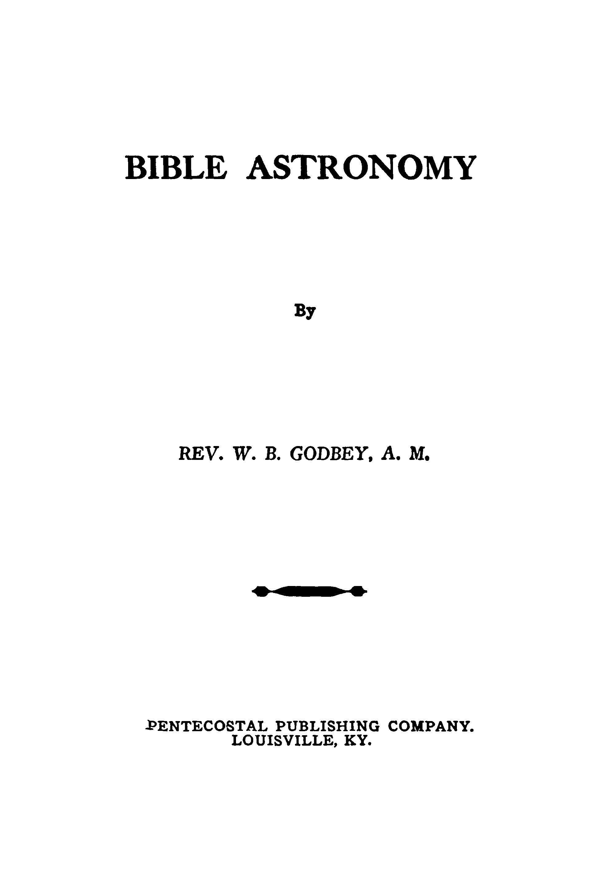 Godbey, W.B. (William Baxter, 1833-1920. Bible astronomy [electronic resource]/ by W.B. Godbey – Wilmore, Kentucky : First Fruits Press, 2021.