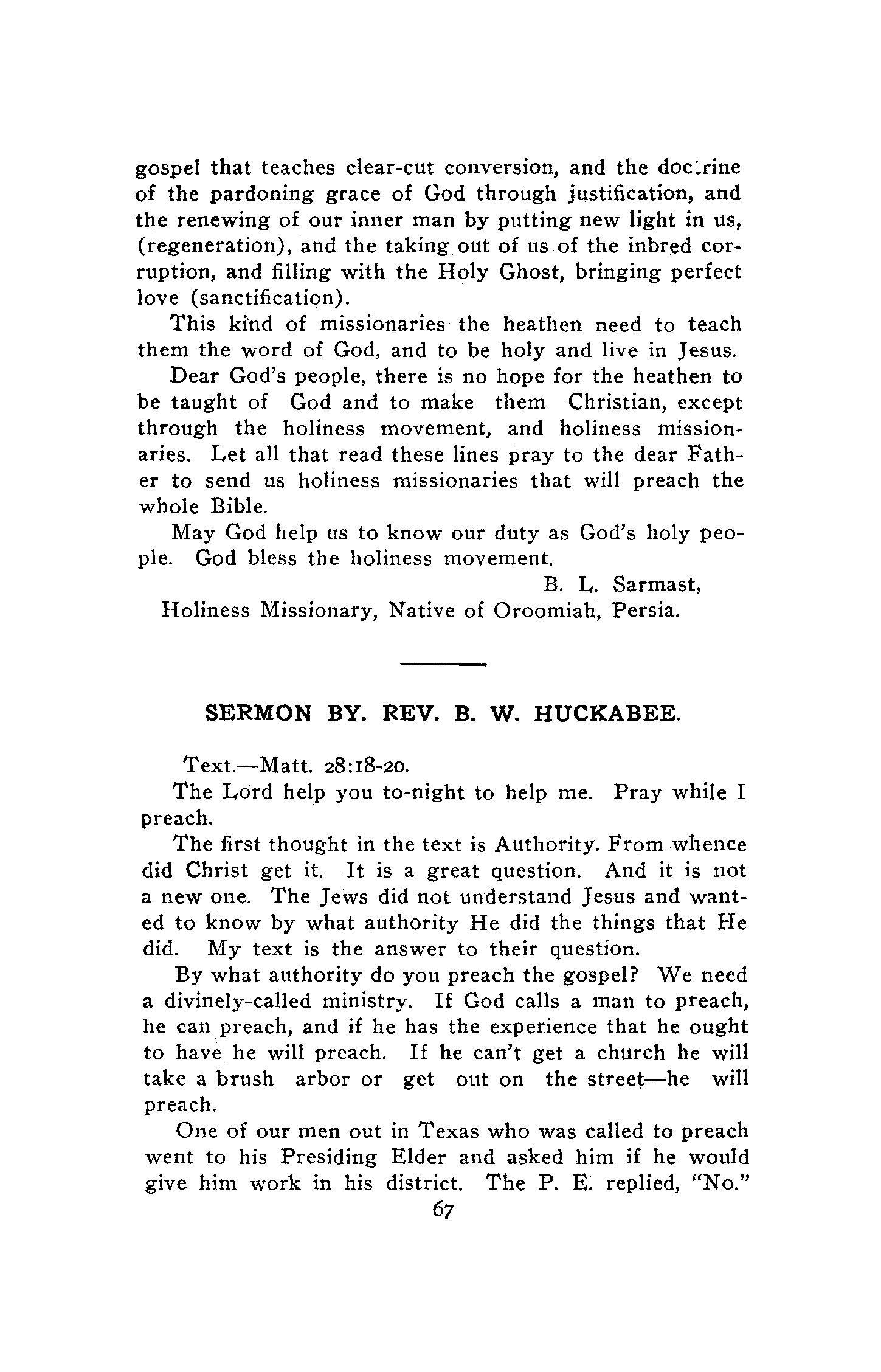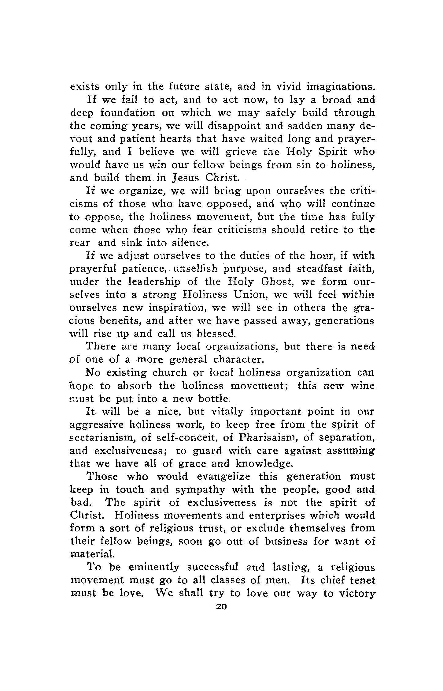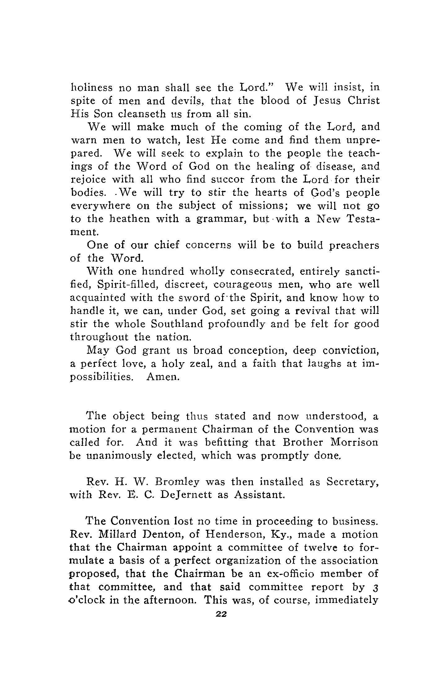 So, no apology is needed for this Convention and its outcome. Many years ago, Holiness Associations were organized in different parts of the South, on independent lines, but various things conspired to their overthrow.