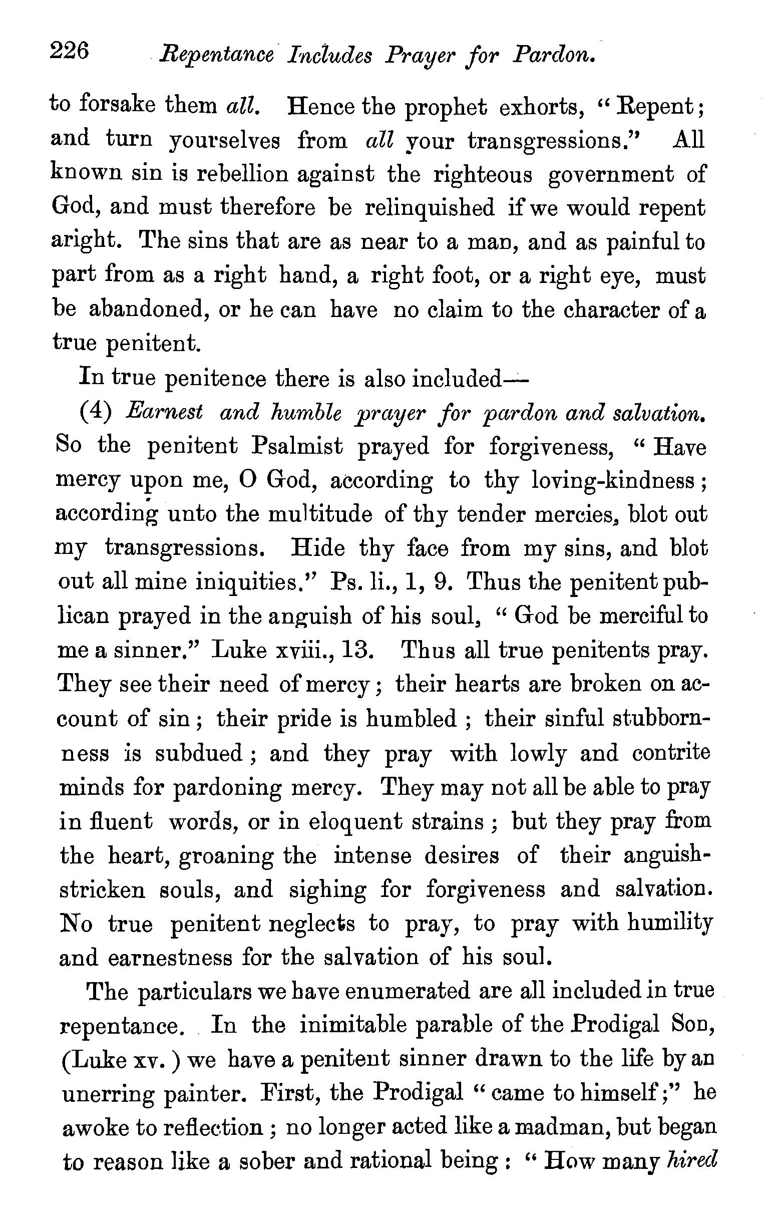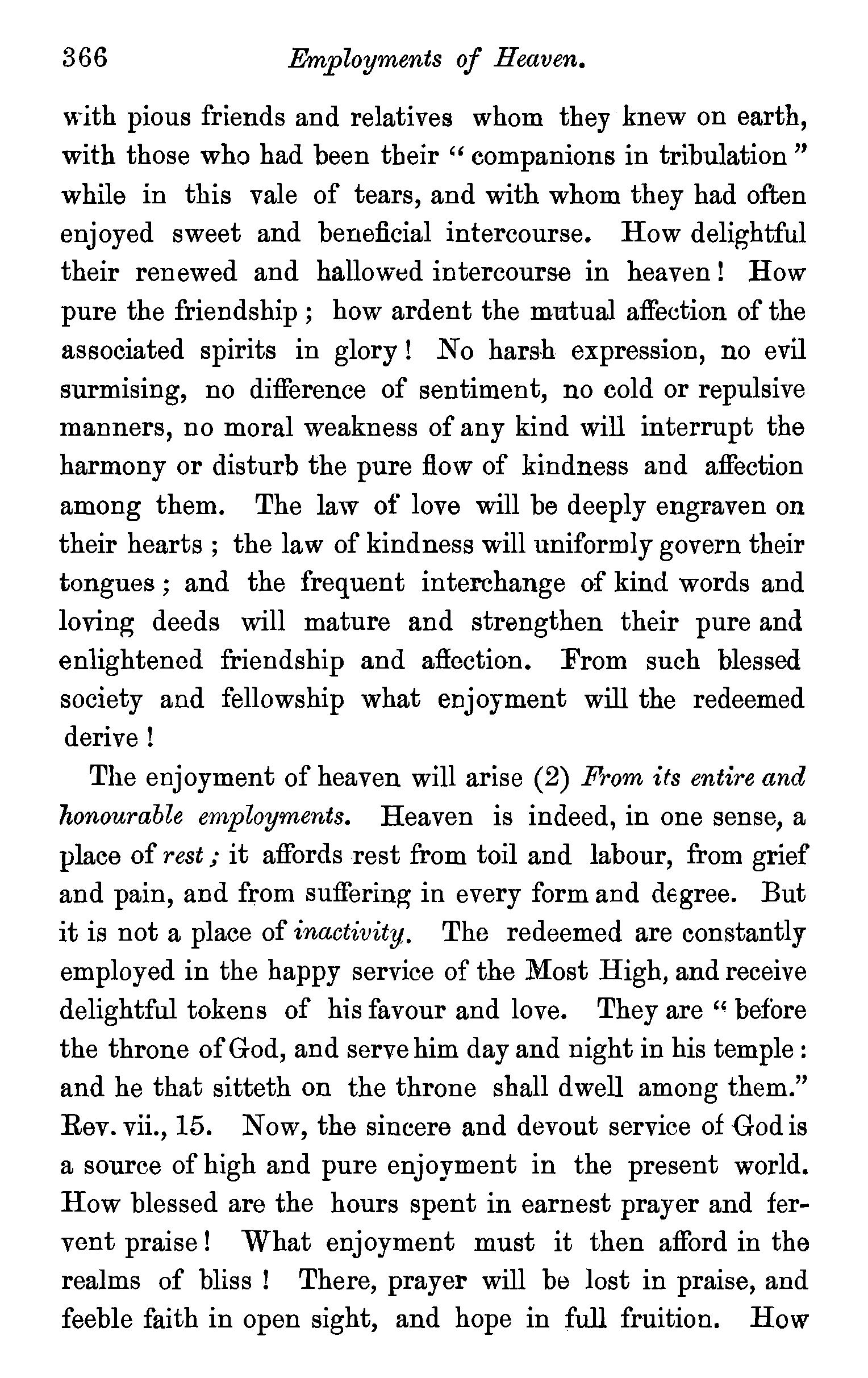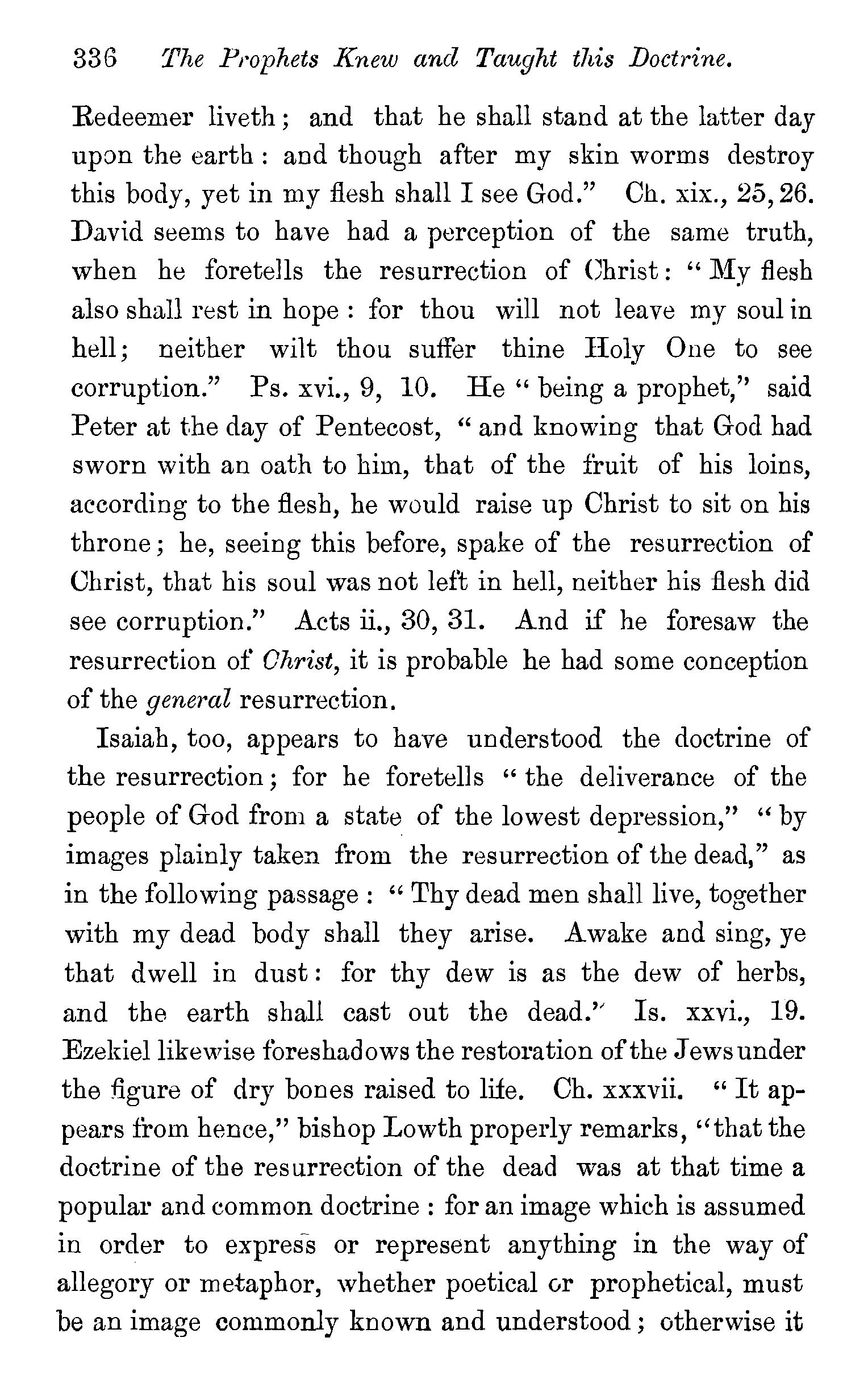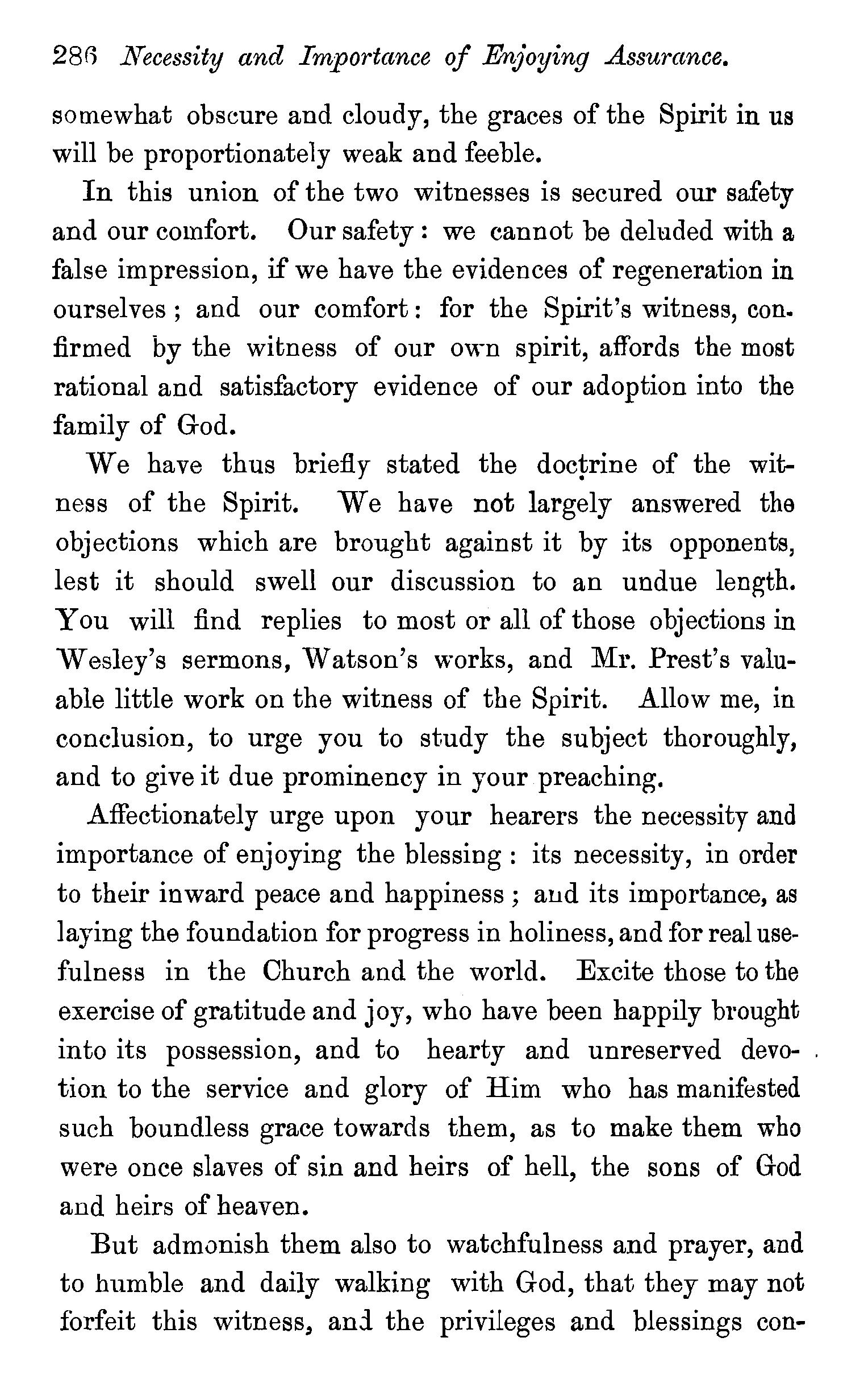 One other passage quoted by the Universalists in support of their doctrine, 1 Peter iii., 18, in which Christ is represented as "preaching to the spirits in prison," remains to be noticed. We stay not to give our reasons for accepting the generally received opinion among orthodox divines, that the apostle here means that Christ by his Spirit preached in the ministry of Noah to those disobedient spirits who were afterwards shut up in prison for thefr incorrigible wickedness, but content ourselves with remarking that the apostle does not give the least intimation that any of these" spirits in prison'' were liberated through the Saviour's preaching, and that, therefore, whatsoever may be the precise meaning of the passage, it cannot fairly be made to bend in favour of the Universalist's theory of the final salvation of all men. We have now carefully examined the most important passages in the Word of God, which have been supposed to teach the opposite doctrine of eternal punishment, and have