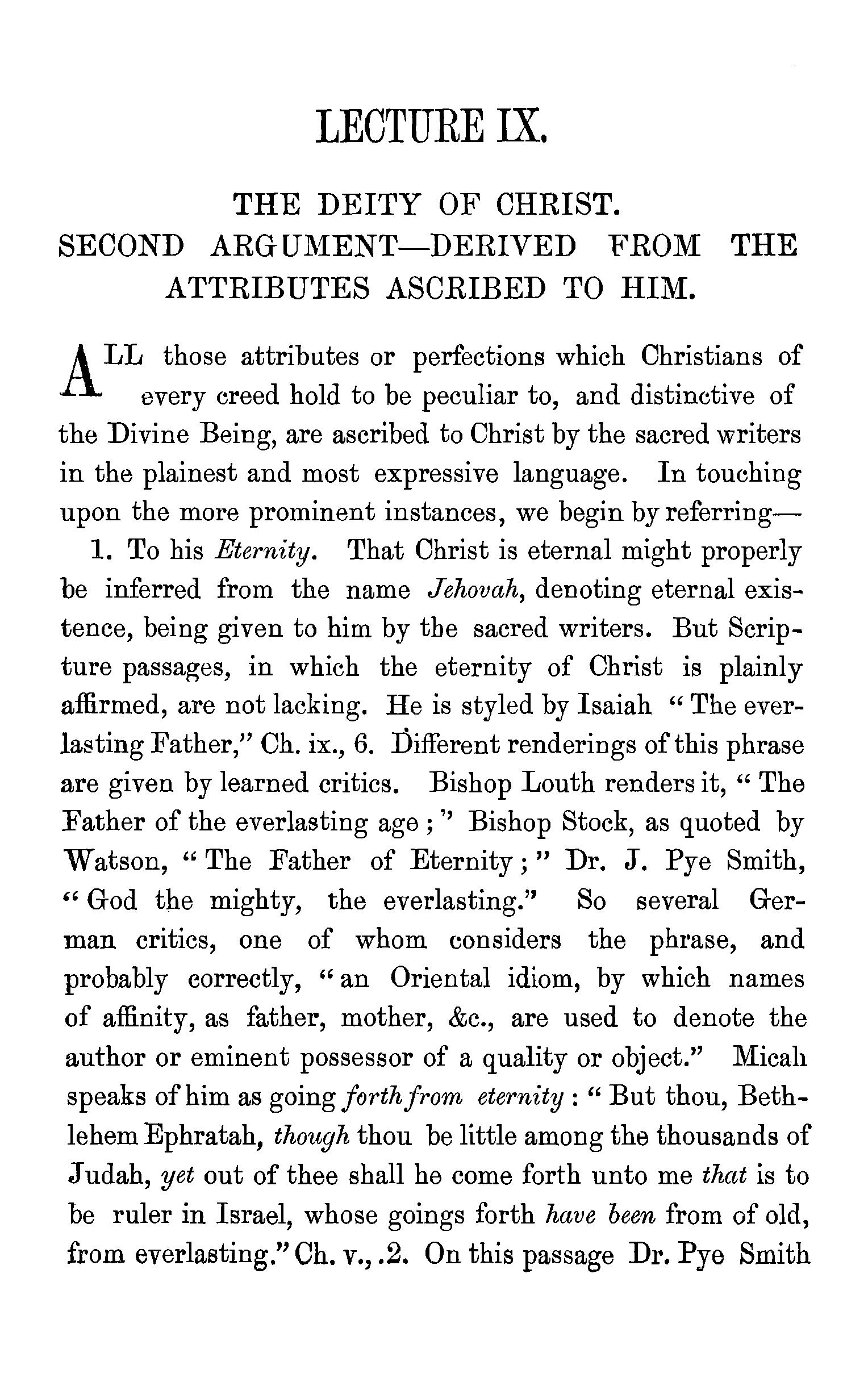 The Deity of Christ. First argument-derived from the names and titles ascribedto Him.