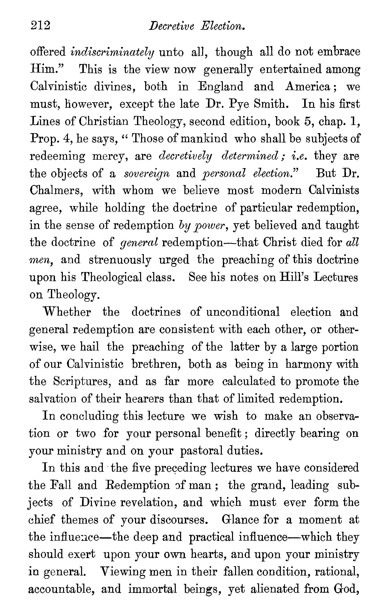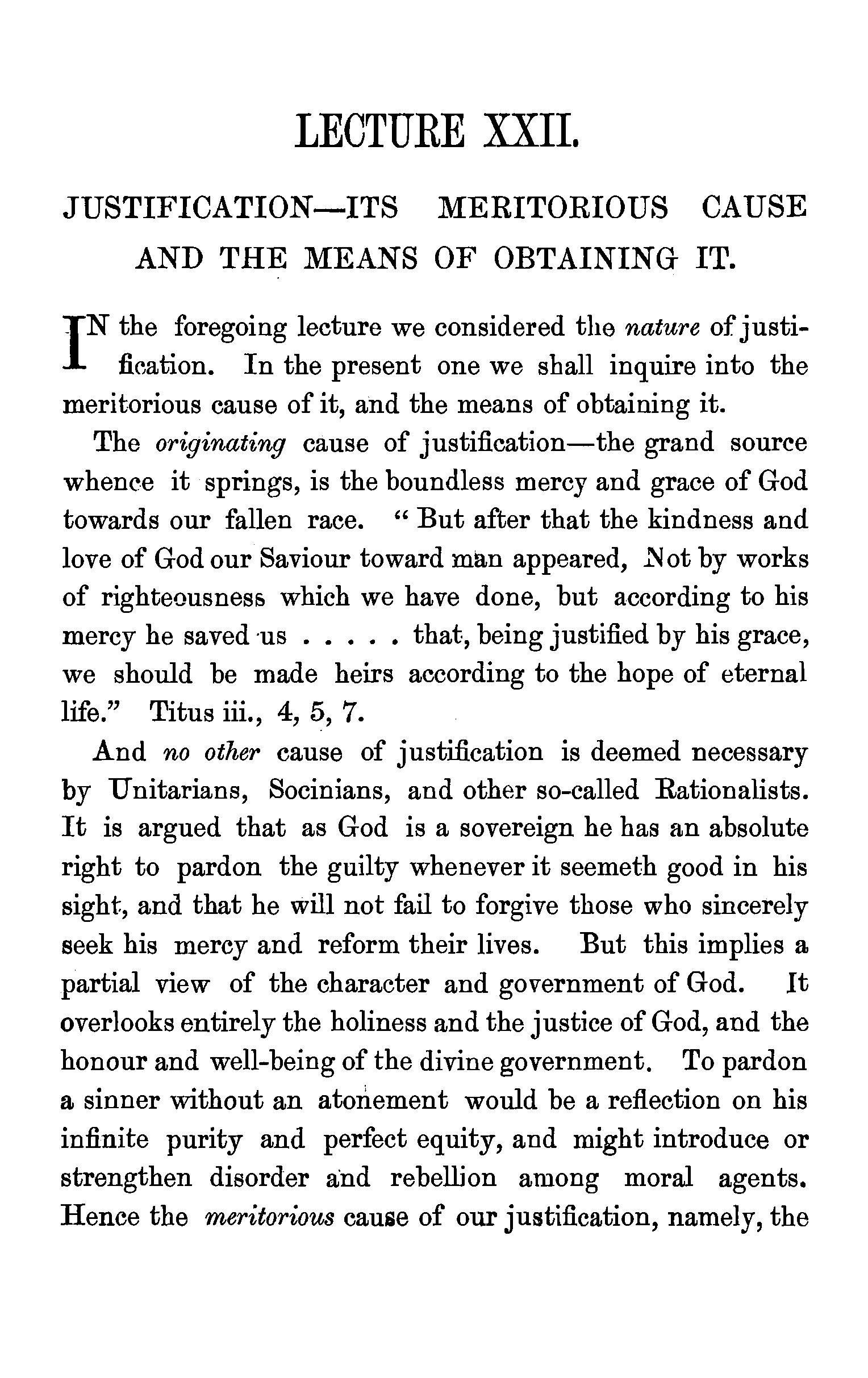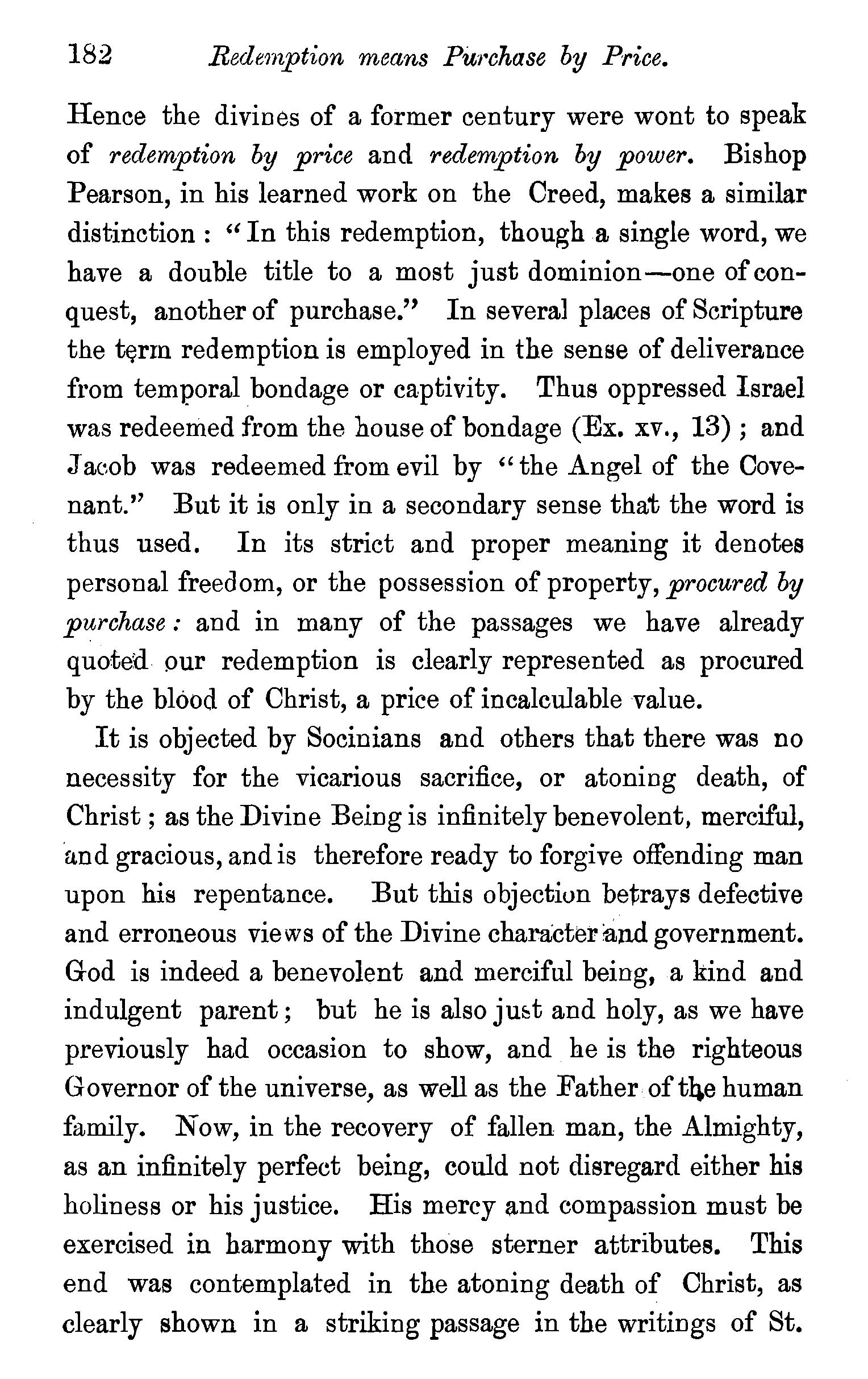 The redemption of fallen beings confined to the human race-Th.e person of the Redeemer-His dignity-His incarnation-Typical sacrifices-His propitiatory death-The teaching of Paul,Peter, and John on the doctrine of atonement-Socinian objections stated and confuted-Questions. . . 176