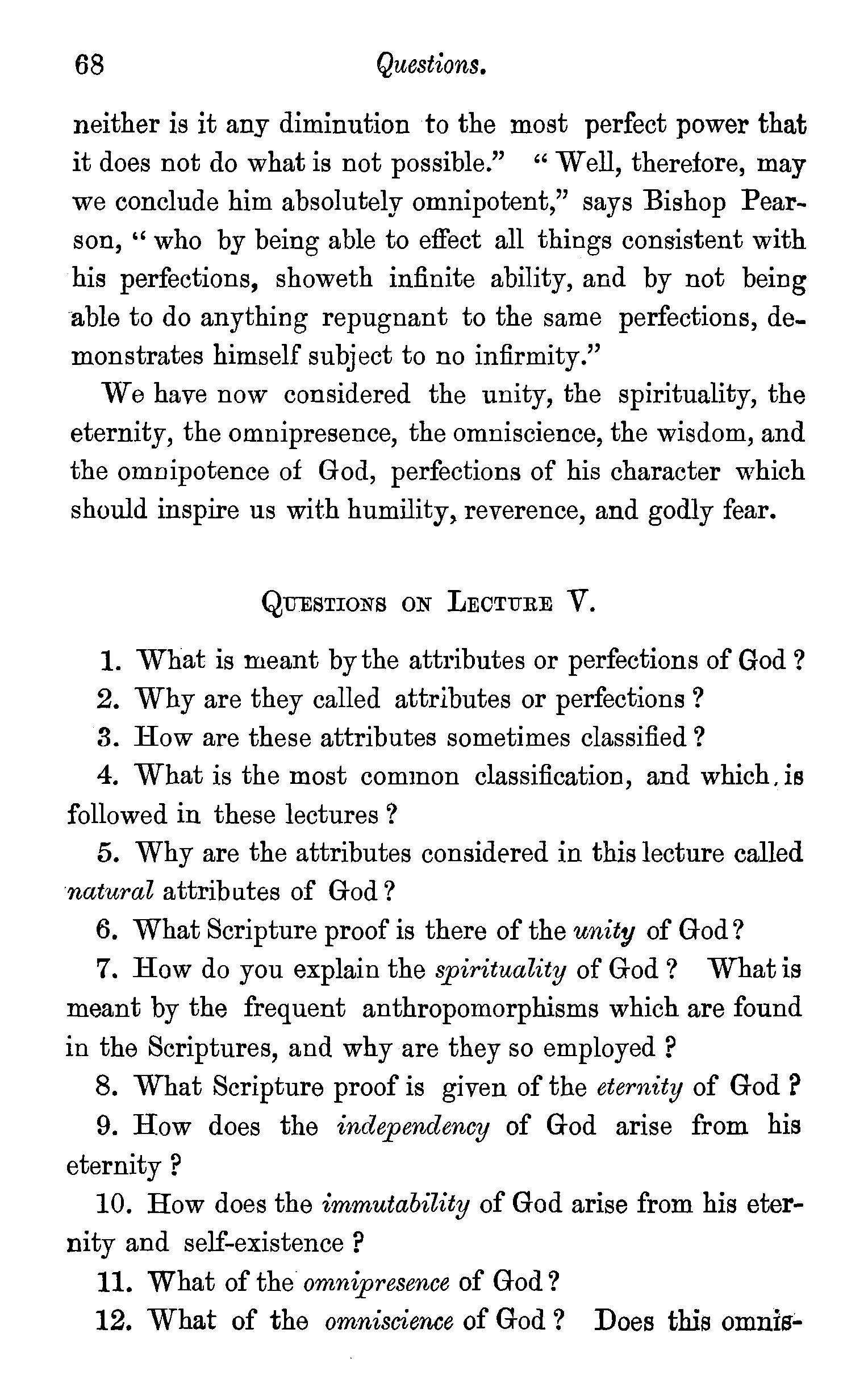 Second Argummt-derived from the attributes ascribed to Him, Eternity-Omnipresence-Omniscience-Omnipotence-Immutability-Questions, , 111