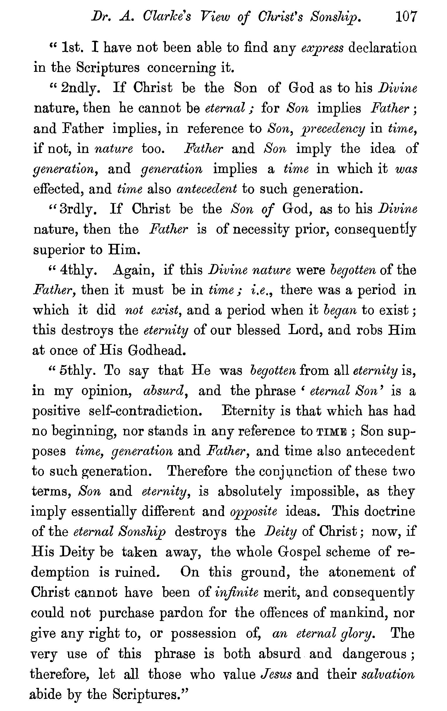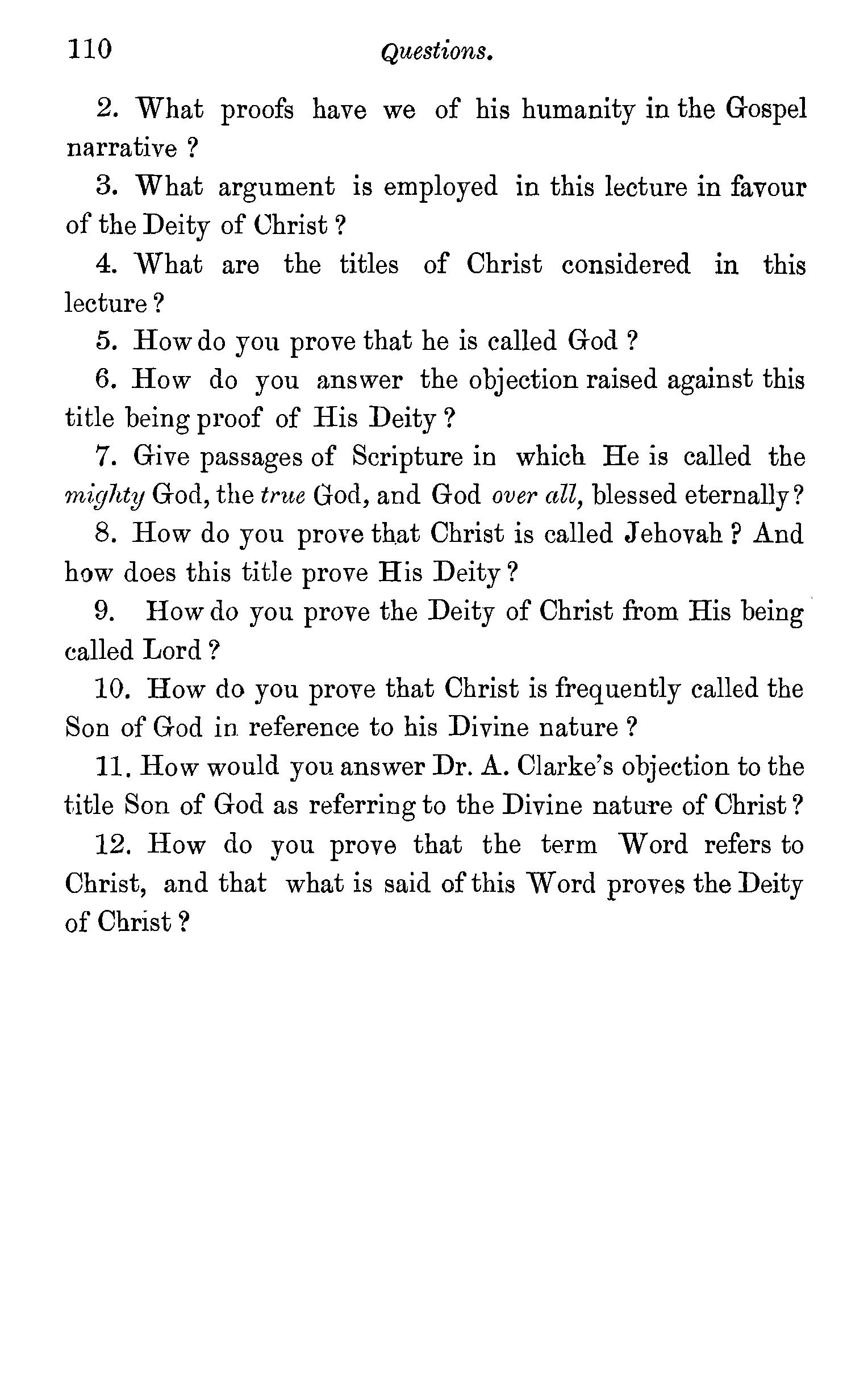 and human-Called God-Jehovah-Lord-Son of God-Dr. A. Clarke's view of the sonship of Christ refuted-The Word of God -Questions. . . . . . , , , . 97