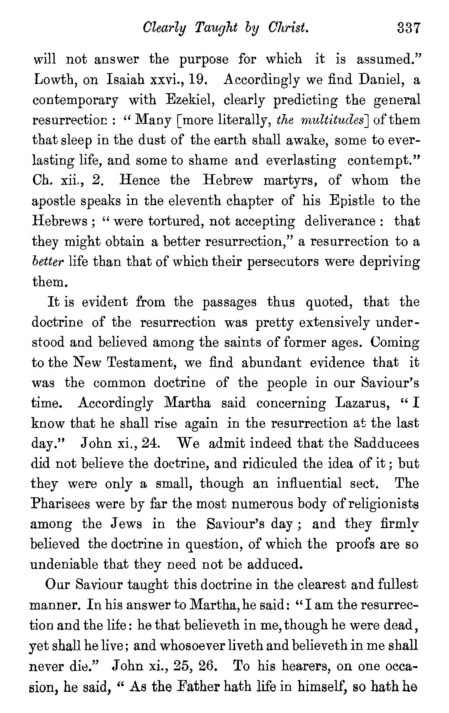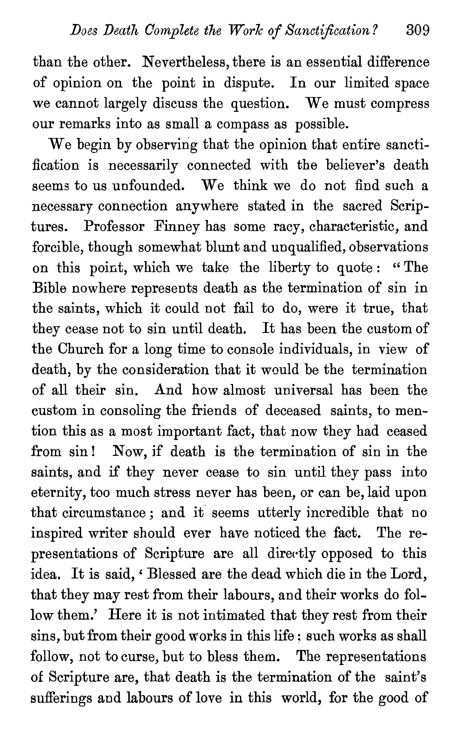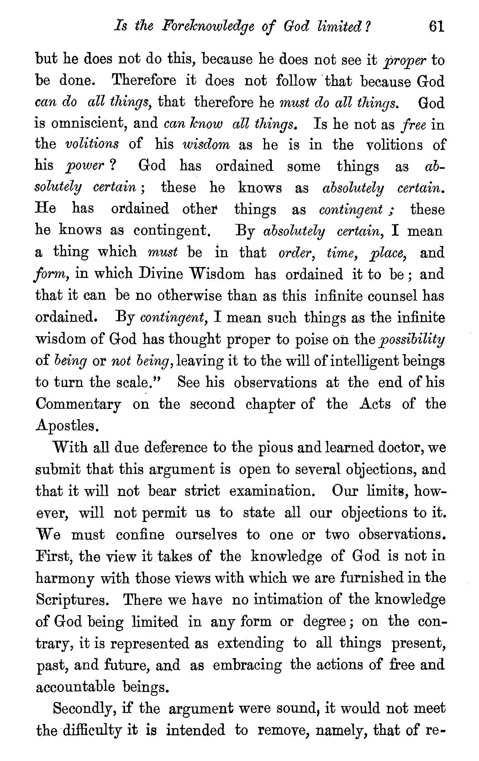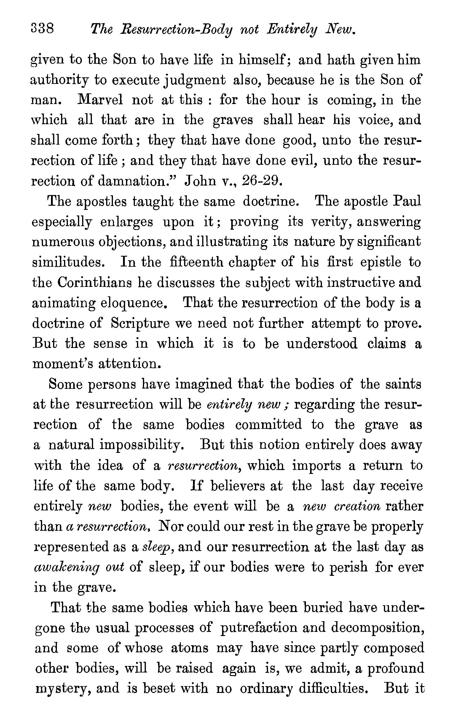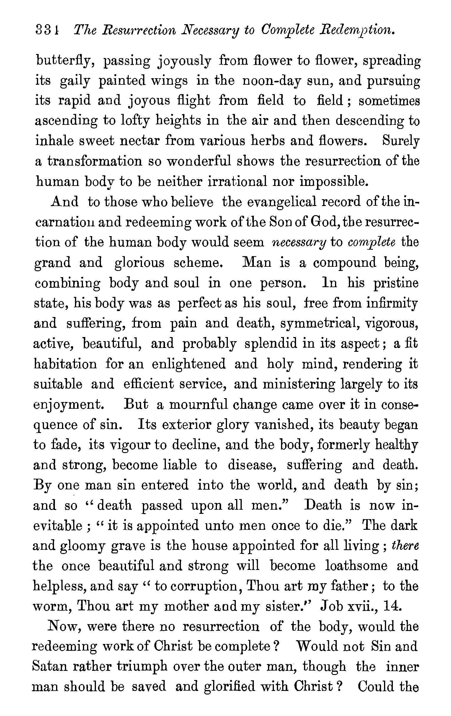 TWO kinds of objections have been raised against the doctrine we have been endeavouring to establish ; one class of objections is drawn from the sacred writings, the other is of a metaphysical character.