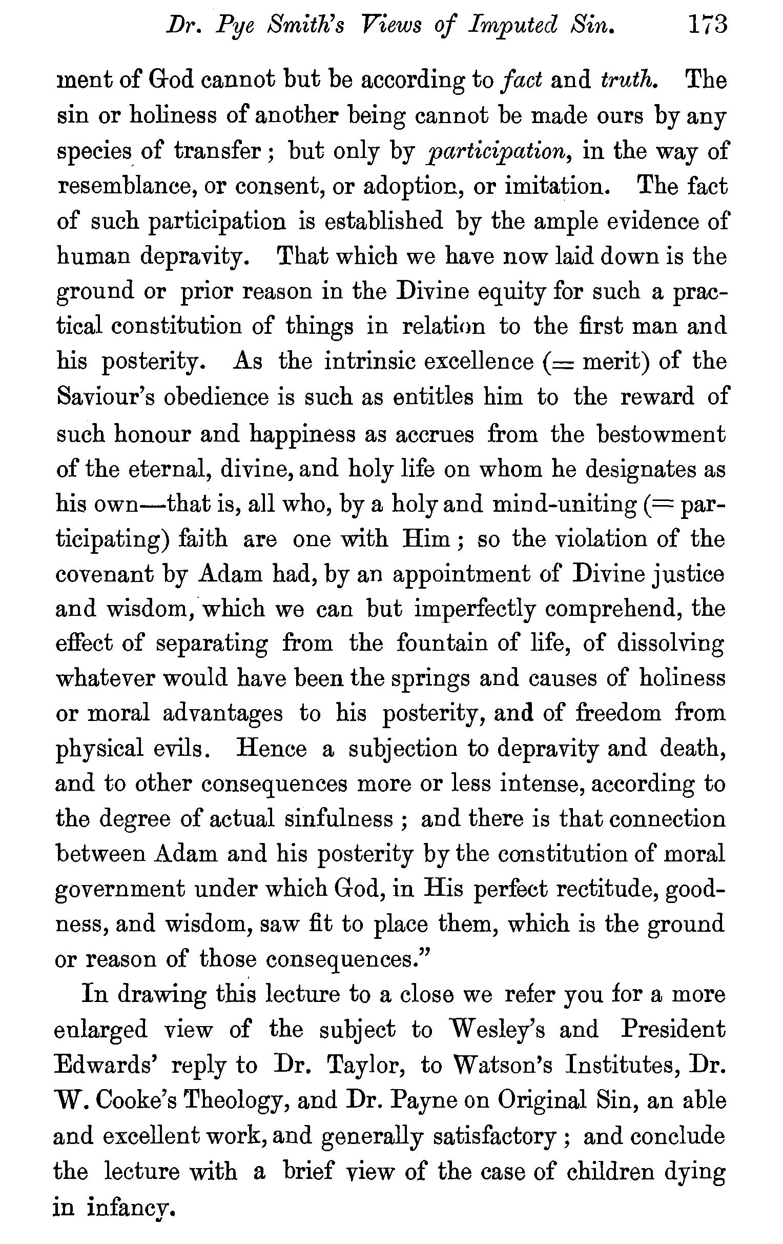 Finite minds, however, are not well qualified to judge on things that are infinite. There is much good sense and sound argument in the following observations of Dr. Dwight upon this point : " We know nothing of infinity, but the fact that certain things are infinite. The nature of infinity we do not comprehend at all, nor form a conception of what this phraseology means. It hardly needs to be observed, that where we have no conceptions we can form no comparisons, and therefore can make no propositions ; the truth of which can be perceived by our minds. Concerning the fact that something is infinite, we may with sufficient care argue, to some extent, successfully. Concerning the nature of infinity, I discern no manner in which such minds as ours can argue at all. But in our discussions concerning infinity we are prone insensibly to blend these two things together; and often are amused with words only, when we suppose ourselves to be employed about ideas. Hence have arisen the perplexity and the want of satisfaction which have attended inquiries concerning this subject." Theology, Sermon 167. Those who wish to see numerous metaphysical arguments respecting eternal punishment may consult Dr. Pye Smith, Mr. Binney, and others.