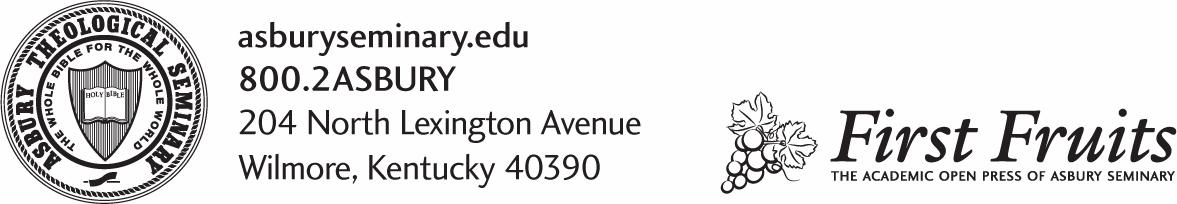 Te Academic Open Press of Asbury Teological Seminary 204 N. Lexington Ave., Wilmore, KY 40390 859-858-2236