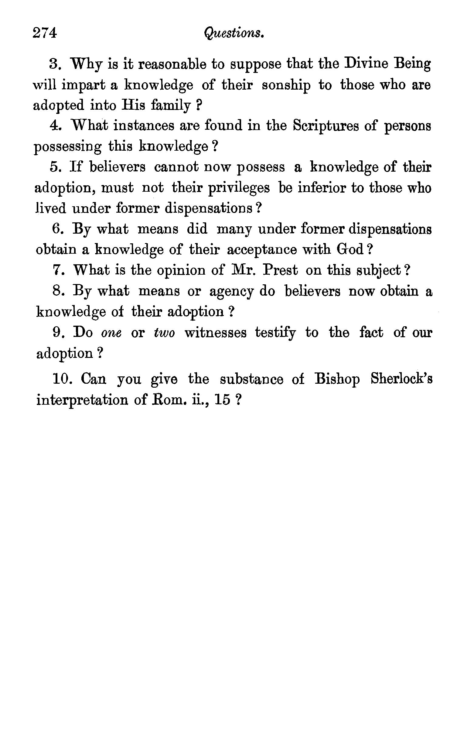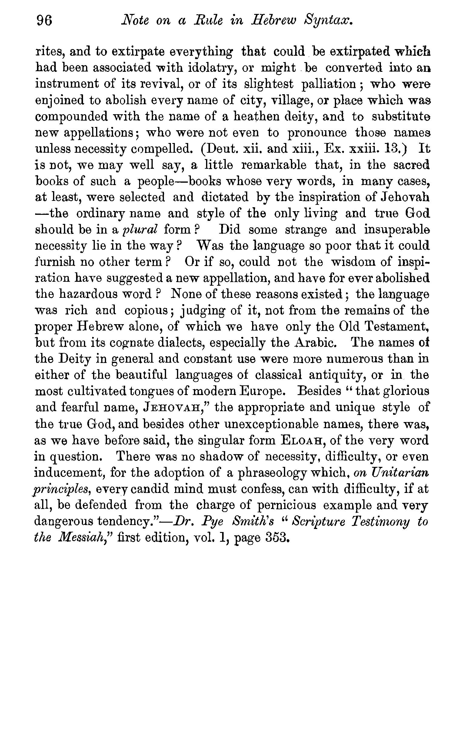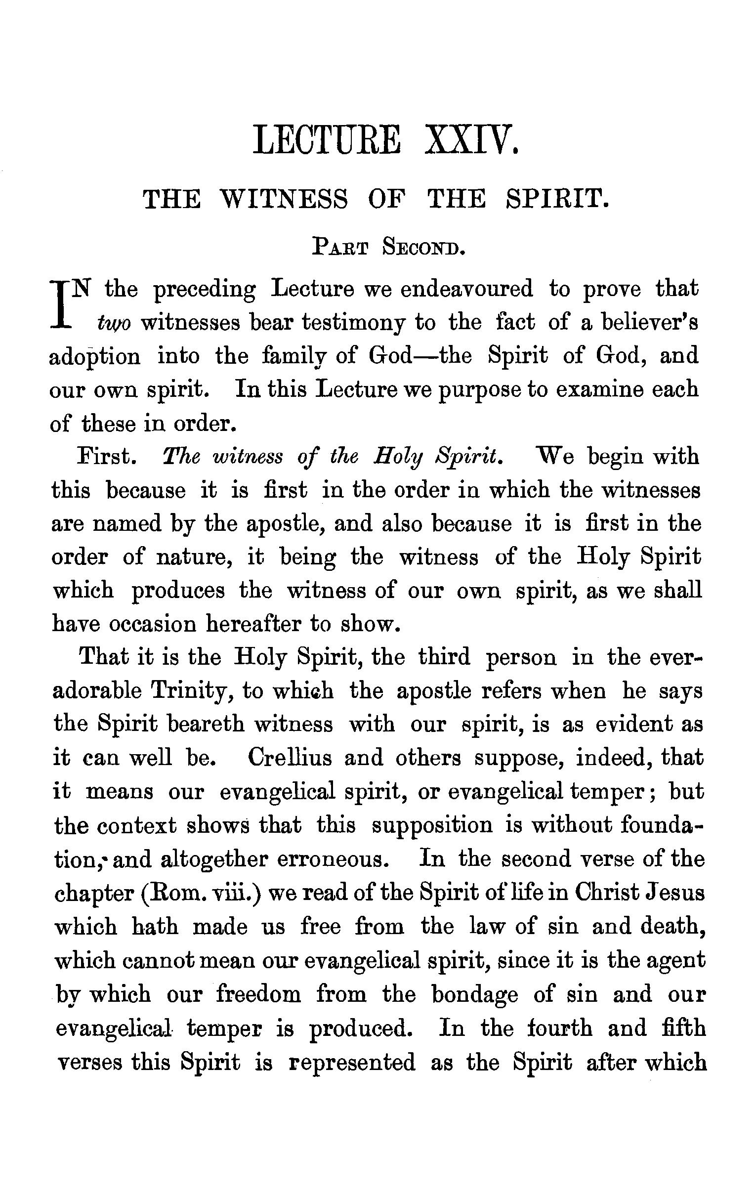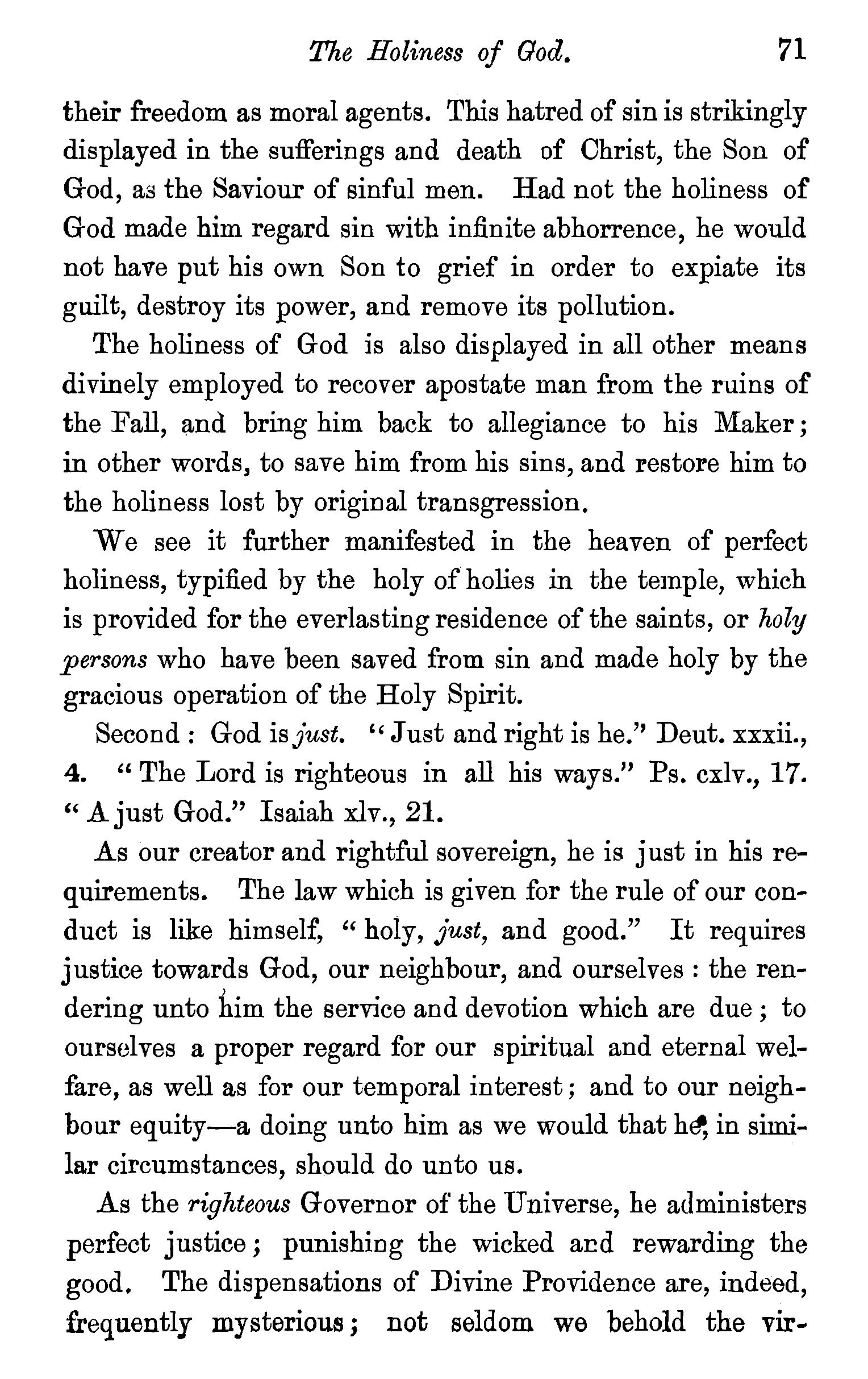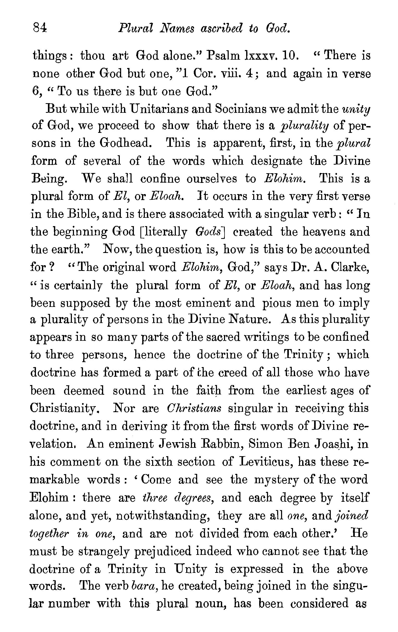 The meaning of the word trinity explained-Trinity implies unity-Plural names applied to God-Plural pronouns used when God is the speaker-Father, Son, and Holy Spirit are each called in Scripture by the proper names of God-Each represented as possessing·the peculiar attributes of God-Each participate in the work of Creation, Providence, and Redemption-Each the object of Divine worship-Mystery of the doctrine-Its practical valueQuestions-Note on a Rule in Hebrew syntax. . 83