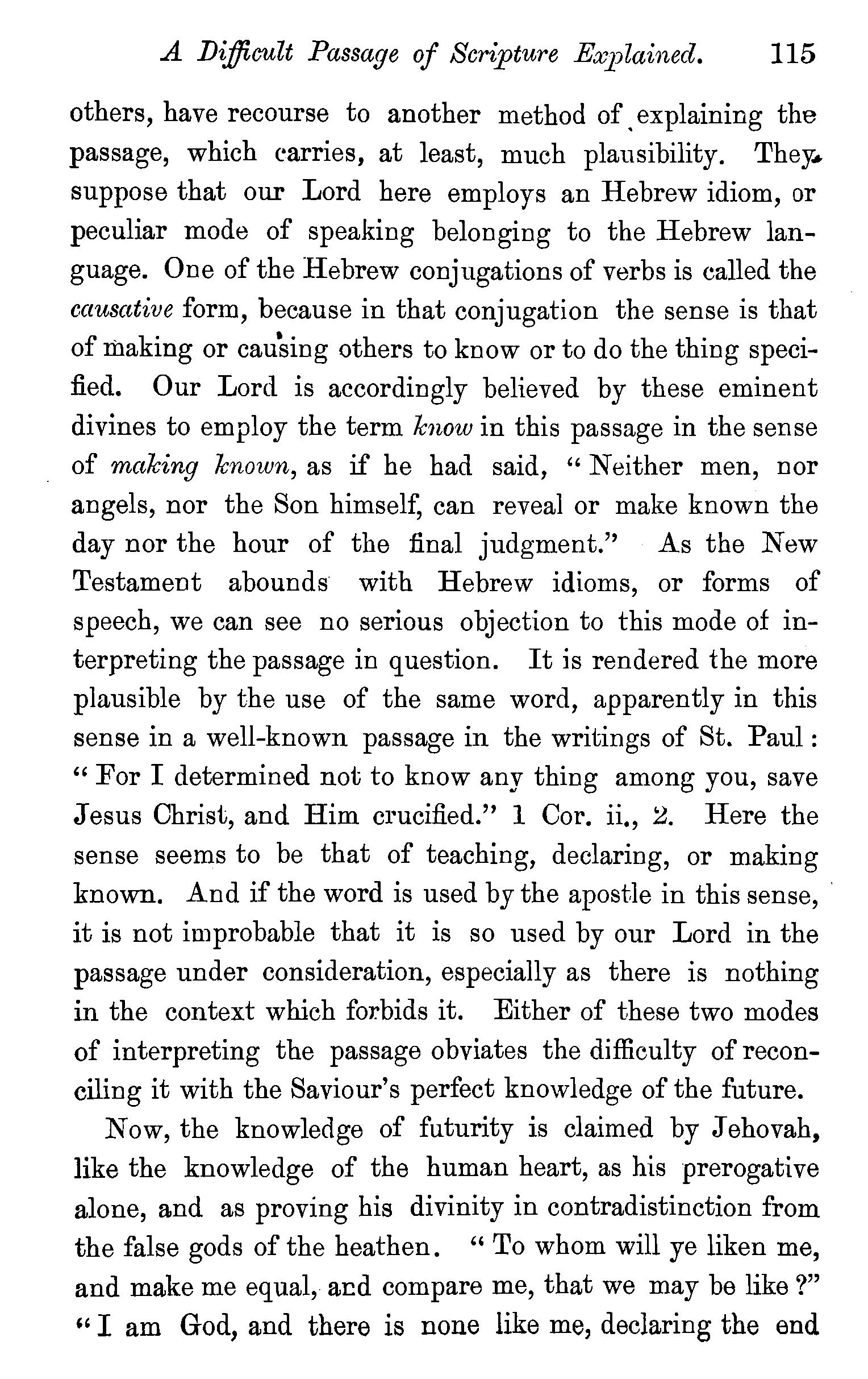 That the passages already quoted can mean anything less than eternal punishment we are at a loss to conceive. Their natural meaning certainly denotes duration without end. And if they are to be taken in the sense of limited duration, we cannot see how the meaning of Scriptural words is to be ascertained, nor what reliance can be placed upon them.
