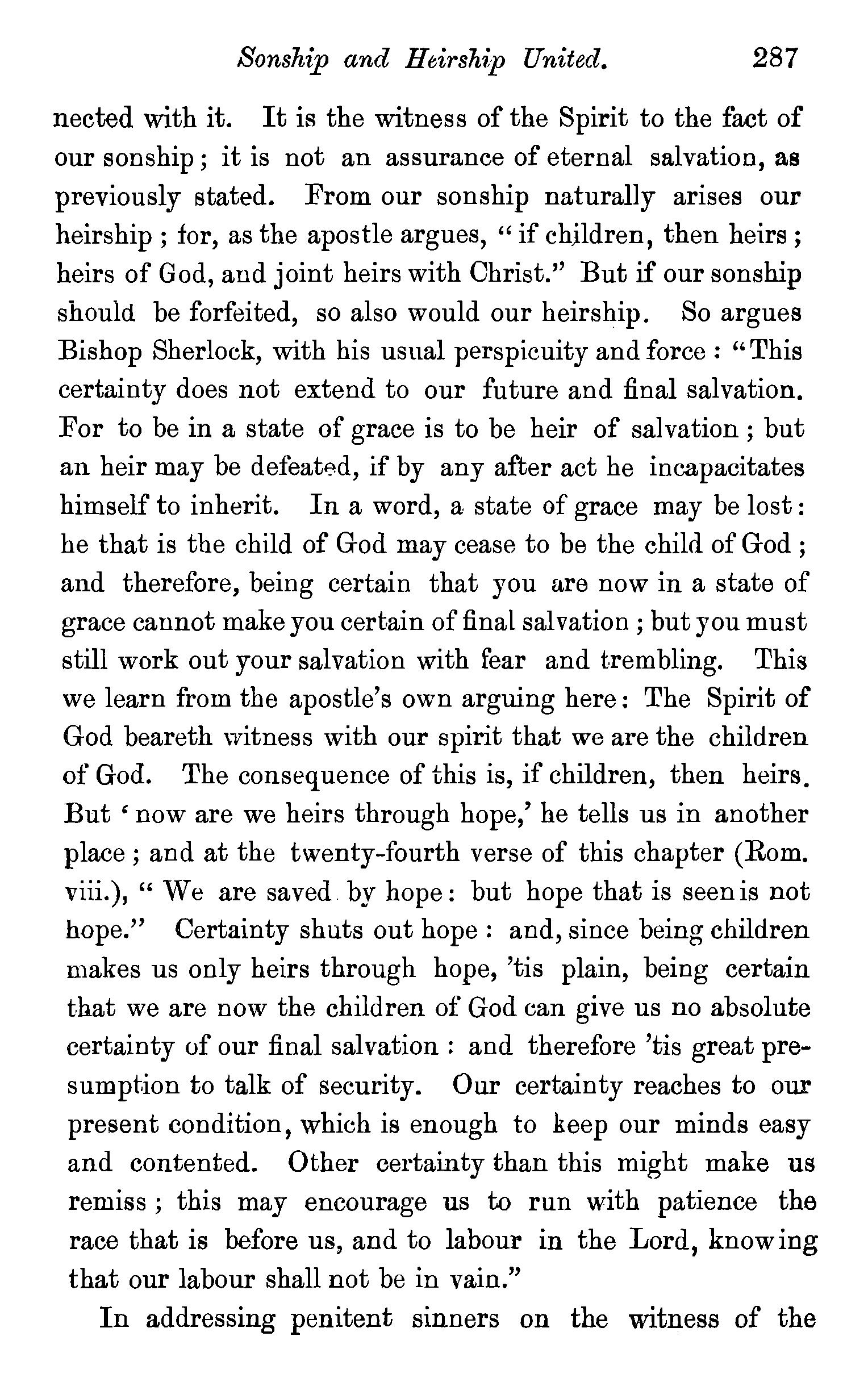 our actual existence-just to adjourn the whole question from the world we are in to the world which is beyond usjust to banish from human hearts the purpose or the wish to make a recovery from sin to righteousness here, and that because taught to believe a recovery may still be competent there-just to annihilate the character of our earthly state, as being a state of probation, and, by lulling men into a security that there is room for repentance and recovery on the other side of death, to turn the whole of their existence on this side of death into a jubilee of impiety and of religious defiance.