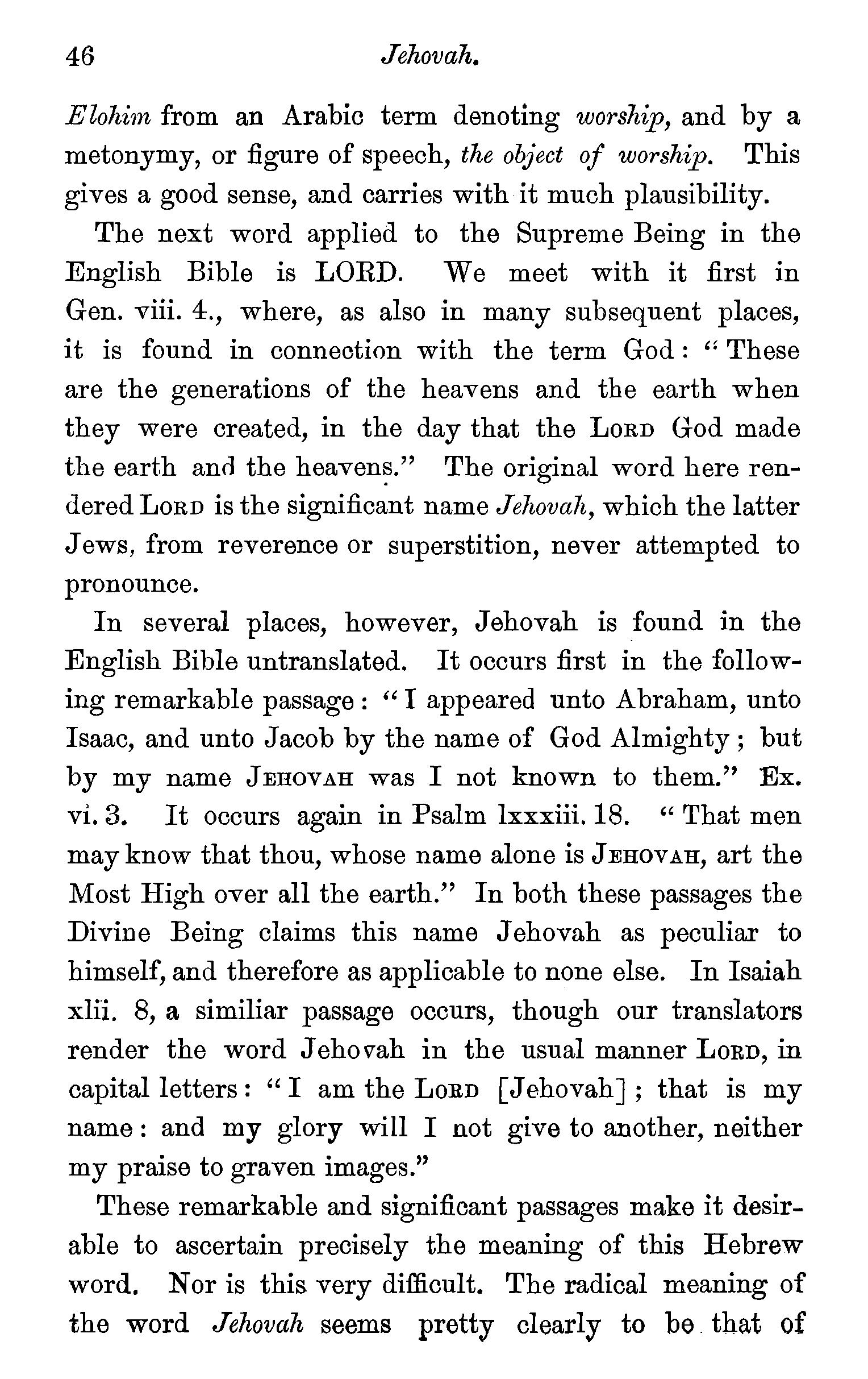 Names given to objects in primitive languages indices of sentiment-God, the Good One-Elohim, the object of worshipJehovah, the self-existent One-Lord, the rightful proprietor of all things-The Almighty-rhe Living One-The Most High-A cluster of Divine names-Questions . 44