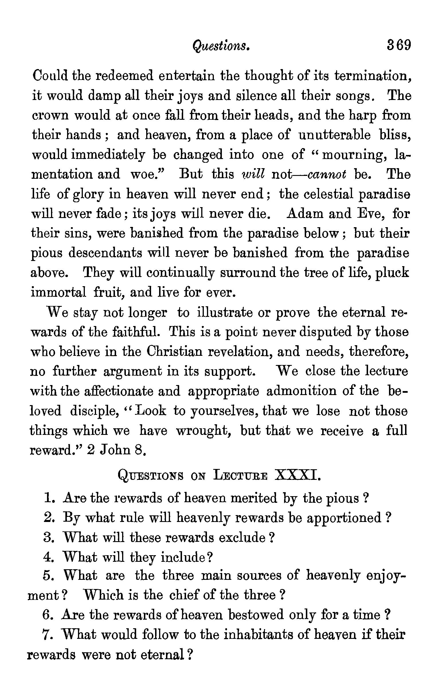 The questions appended to each lecture will, it is hoped, be found of much service as catechetical exercises, and also in making clearer and deeper impressions on the mind of the reader.