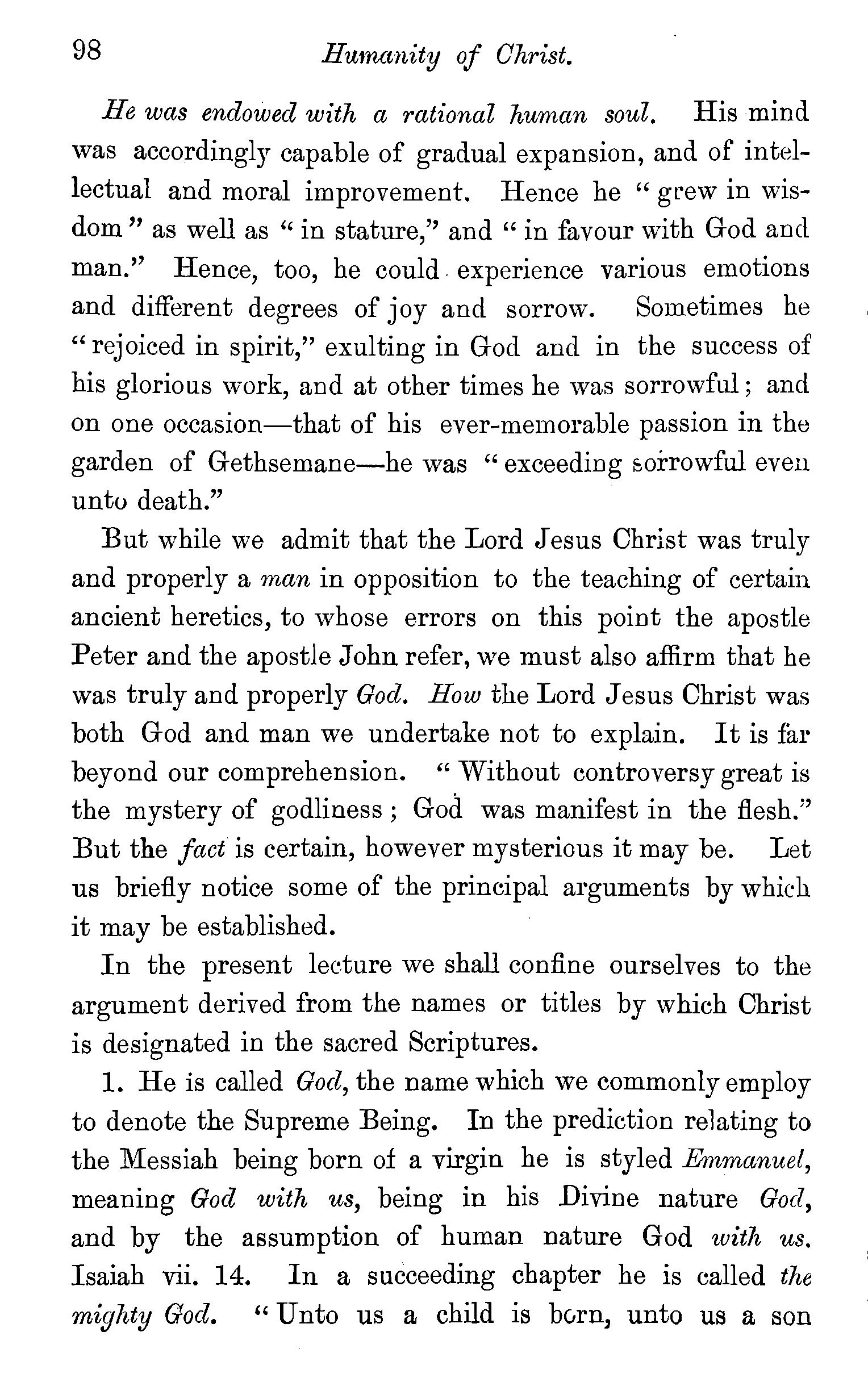 His humanity universally admitted-Union in him of the divine