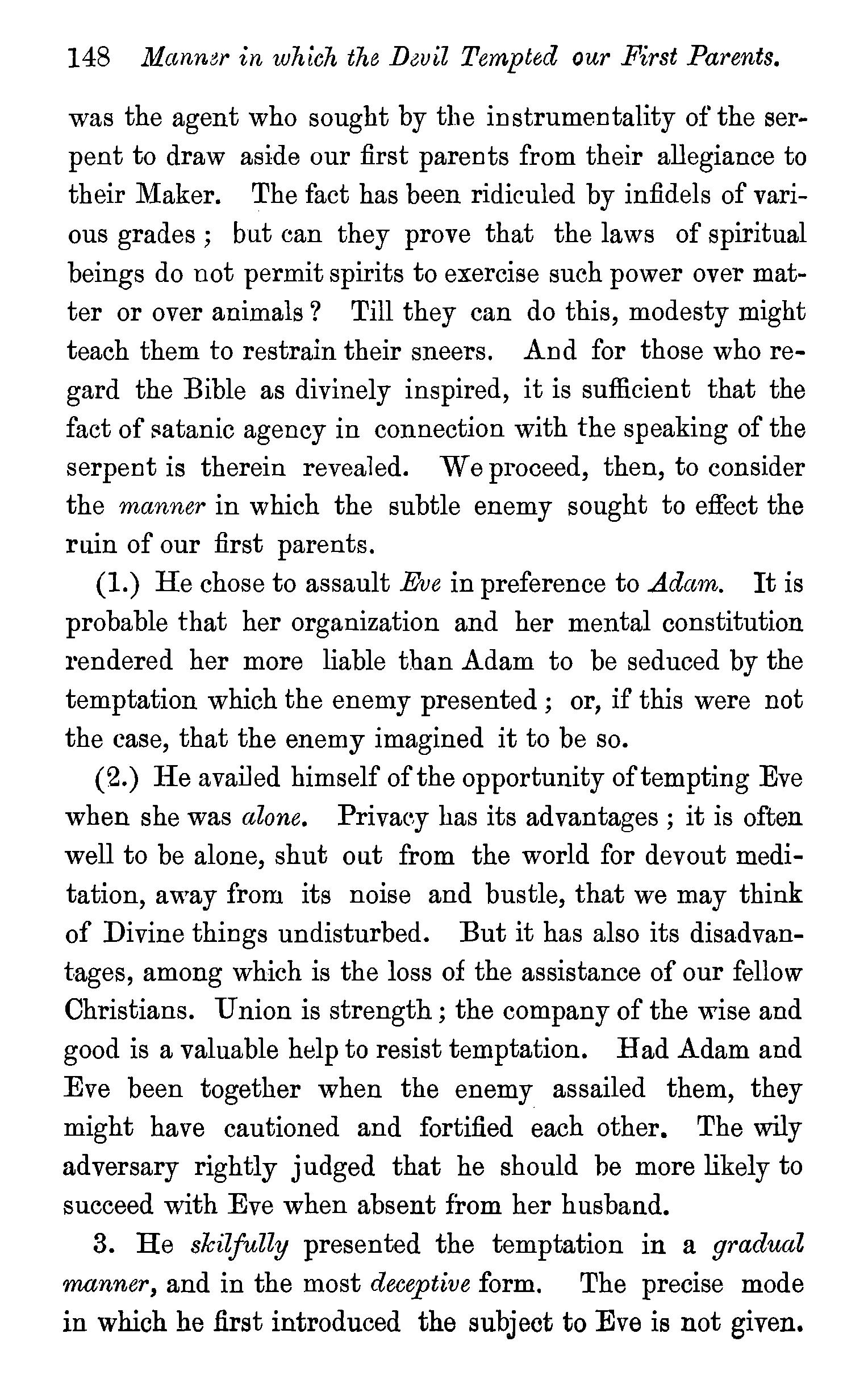 the tempter-His cunning-How the temptation operated on Eve -Eve becomes a tempter-The aggravation of the first sin-.Q uestions, .l,t5
