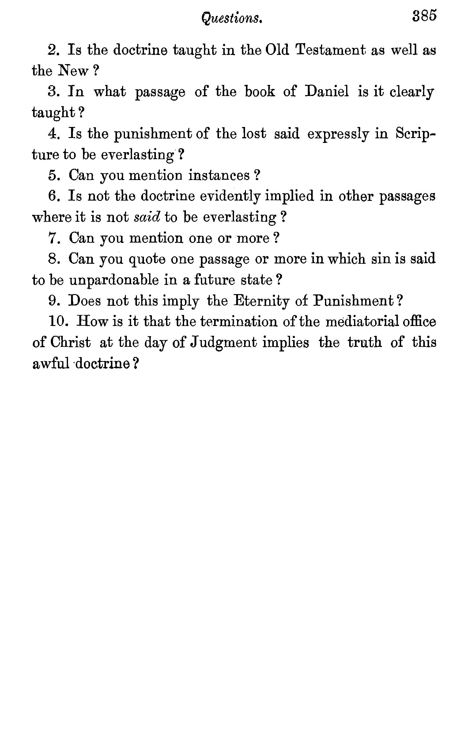 From these scriptural passages it is evident that the doctrine of eternal punishment is one of the solemn verities of revelation.