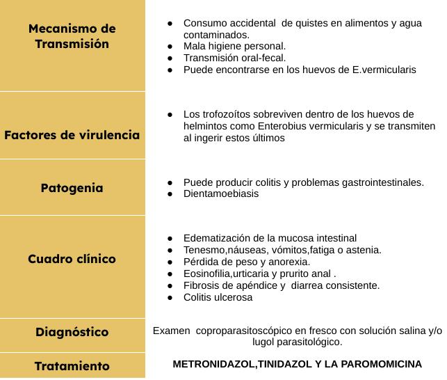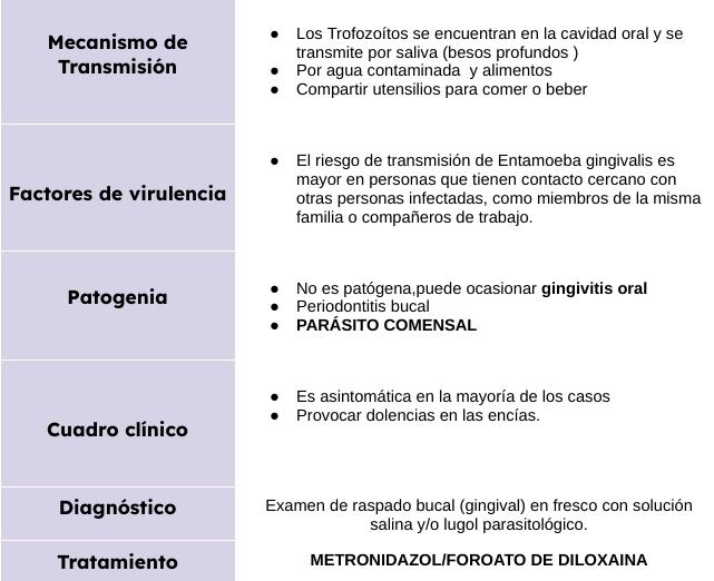 No se ha identificado una etapa de quiste para la Entamoeba gingivalis