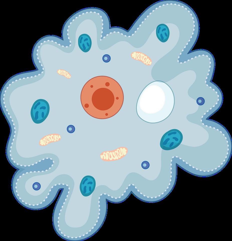 Tiene pseudópodos cortos y gruesos que le permiten moverse y fagocitar partículas alimentarias.