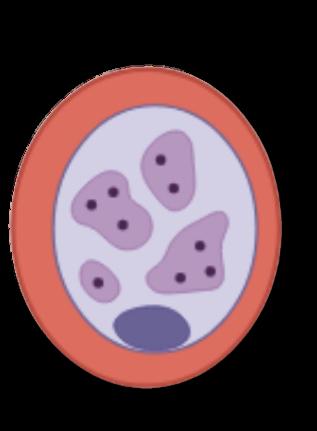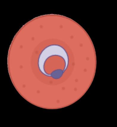 El núcleo es ovalado, con cromatina granular uniformemente distribuida
