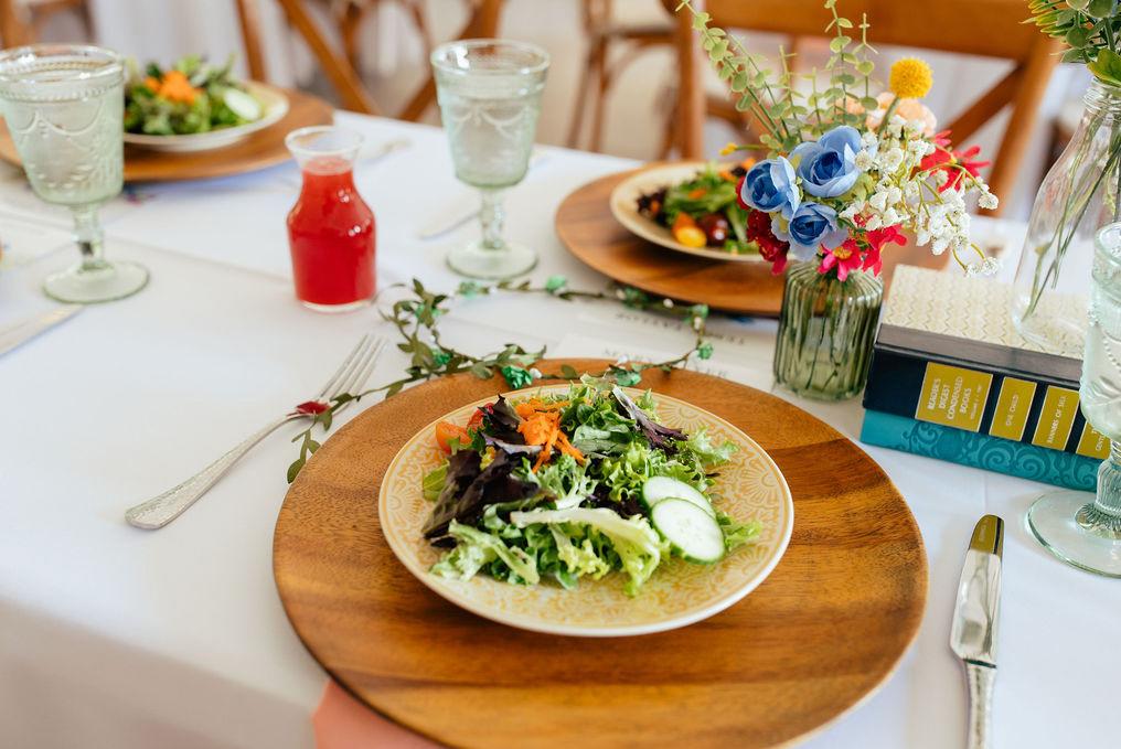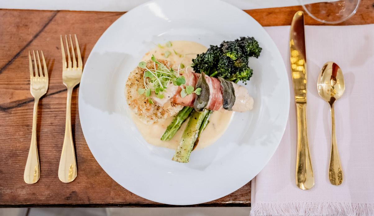 Plated dinners include bread, salad and choice of one starch, one vegetable and protein(s)
