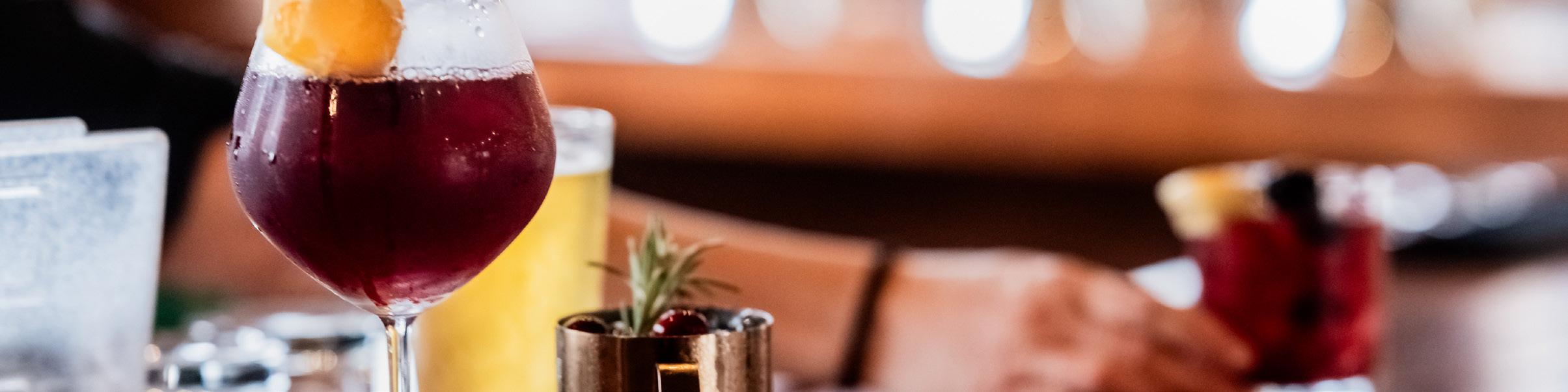 Red or White Wine, Triple Sec, Seasonal Fruit Juices, Lemon Lime Soda, & orange slice garnish