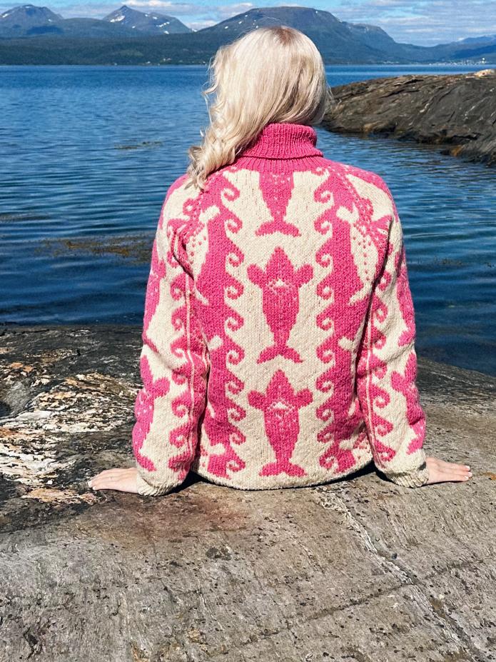 Min store hjertesak er naturvern. Jeg hadde lenge hatt lyst til å gjøre noe mer for miljøet enn å kildesortere og kjøpe mindre da jeg bestemte meg for å designe en genser der inntektene skulle gå til Naturvernforbundet. Men jeg ønsket å gjøre mer! Derfor har jeg invitert designere jeg vet er opptatt av miljø og naturvern til å være med i denne boken. Det har vært viktig for meg at de som er med har litt forskjellig stil for å skape variasjon. Mine bidrag er inspirert av det fantastiske livet i havet!
