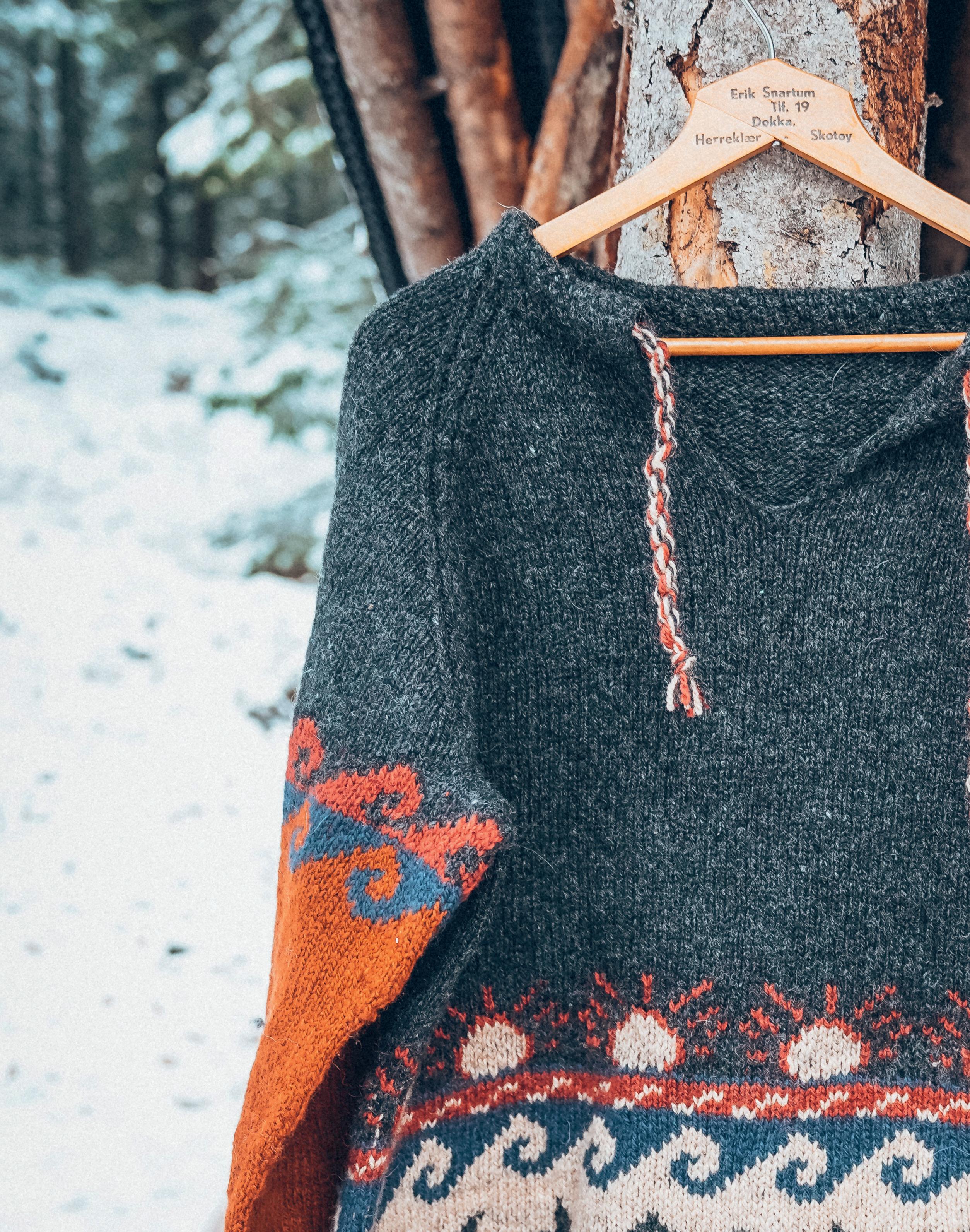 En hel dag på tog er ingen sak med strikketøy. Idet vi ankommer Oslo S rett før midnatt, er raglanfellinga unnagjort og genseren på – med rundpinnen rundt halsen, for jeg rakk bare halve hetta. Ambisiøse mål til tross: Jeg har hatt en sjeldent avslappende dag. Genseren blir helt ferdig bare noen dager senere, og nå skal den få varme meg i mange, mange år <3