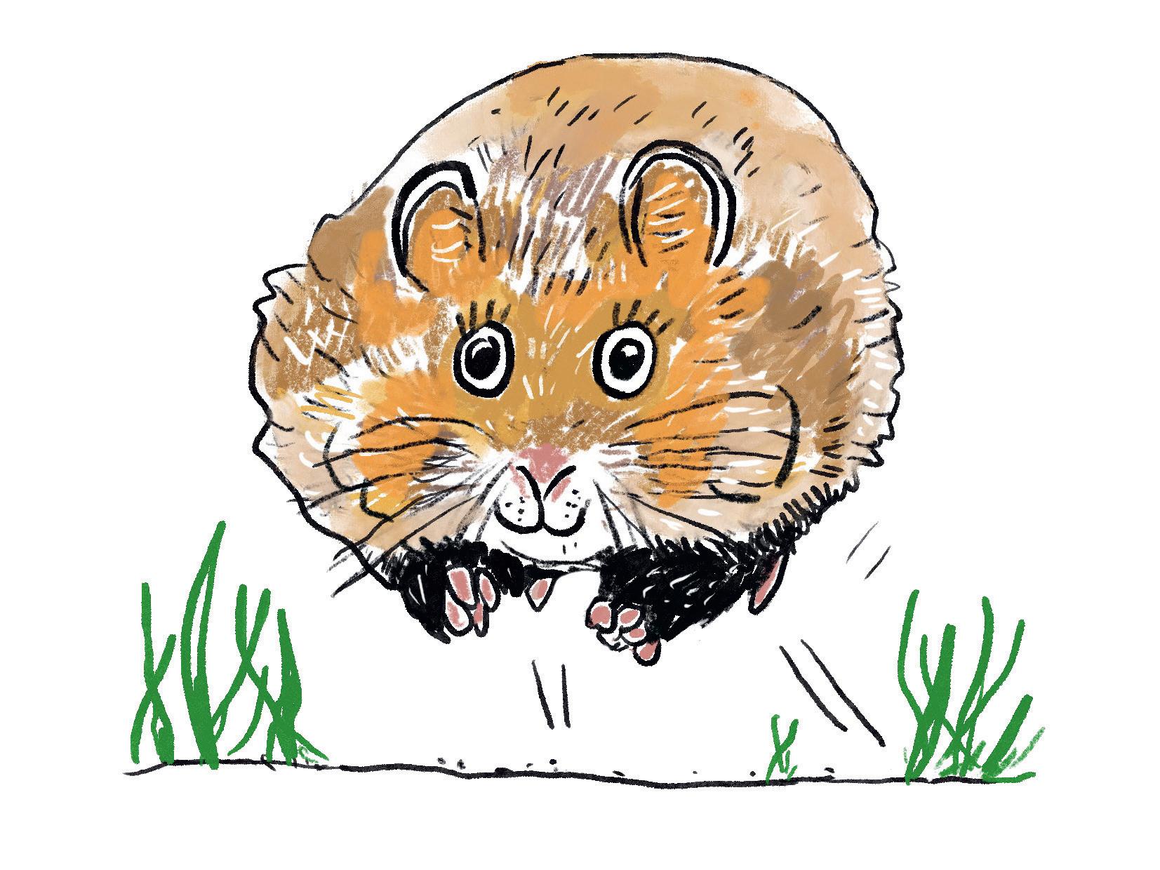 Hamsteren er en liten gnager som lever i ganger og huler under bakken i Syria. Den kommer bare opp av jordtunnelene sine om natten. Da piler den rundt i kilometer etter kilometer. Målet er å finne mat: Nøtter, frø og insekter som den stapper inn i kinnene sine. Når kinnene er fulle og ser ut som små ballonger, piler hamsteren tilbake til hulen sin under jorden.