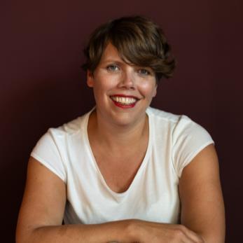 Maria Olerud (f. 1993) jobber som journalist og litteraturkritiker. Blomsterkrans er hennes debut som forfatter.
