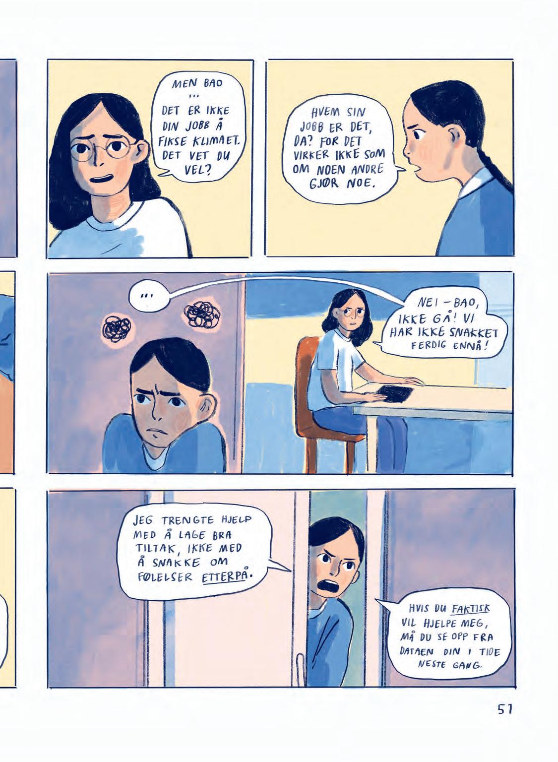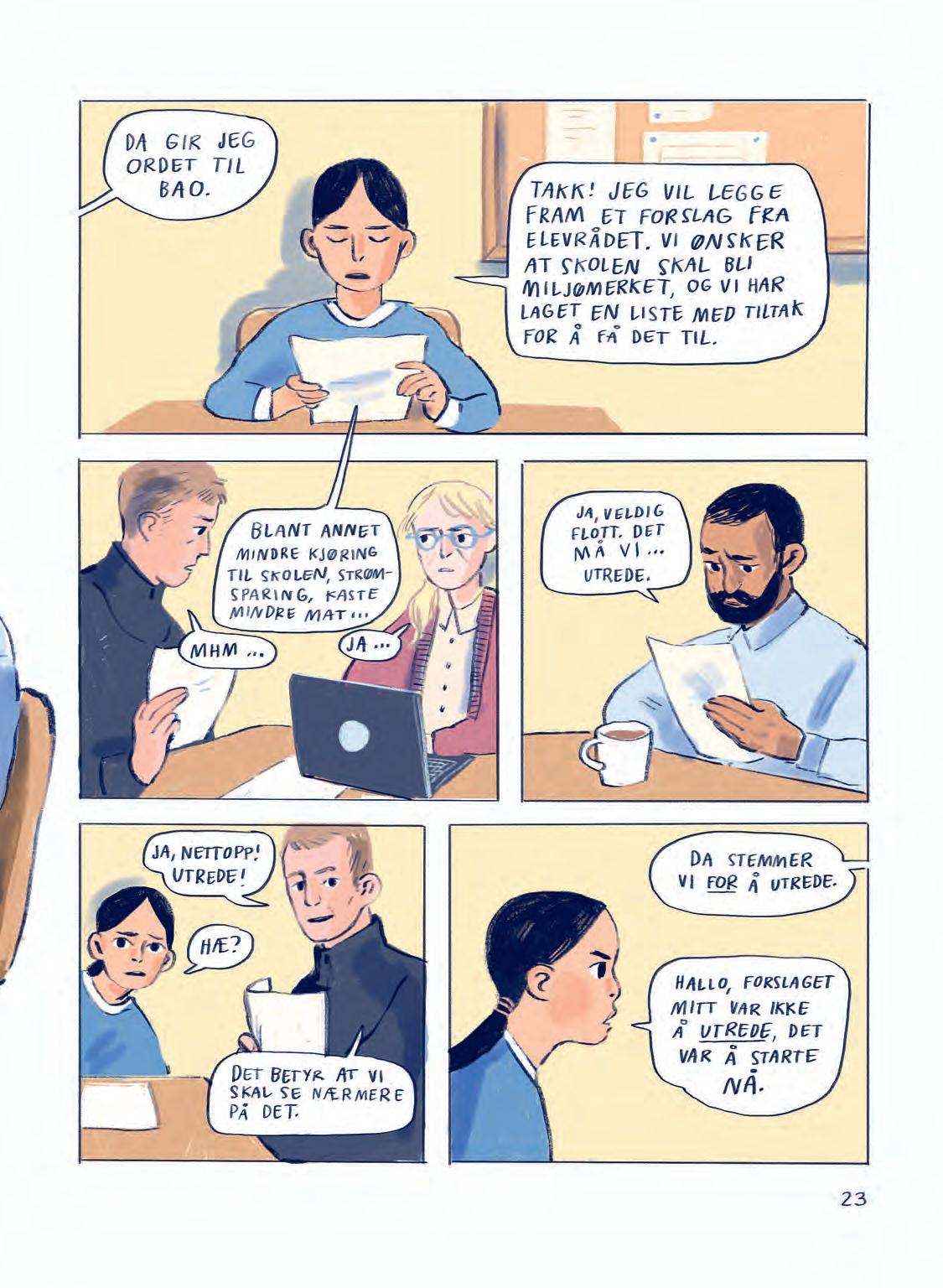 De voksne vil gjøre om skogen utenfor skolen til parkeringsplass, og Bao skjønner at det er hun som må sette ned foten! Hun organiserer et opprør for å redde skogen, og drar med seg bestevennene Tuva og Linnéa. Men forstår Abdi og de andre guttene i B-klassen hvorfor det er viktig? Og hvordan får man egentlig de voksne til å skjønne alvoret når man bare er 12 år?