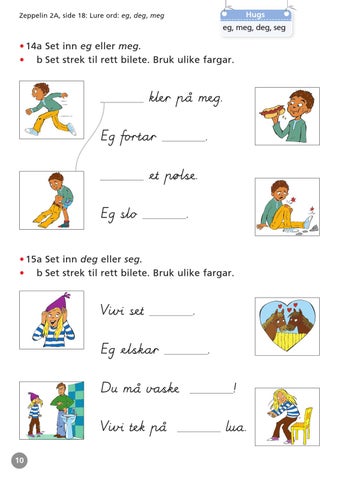 • 14a Set inn eg eller meg. • 11b Set strek til rett bilete. Bruk ulike fargar.