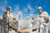 • Snakk sammen om de to filosofene. Vet dere noe om dem fra før? Hvor har de fått navnene sine fra? Spør elevene om hva de forbinder med ordet «filosof».