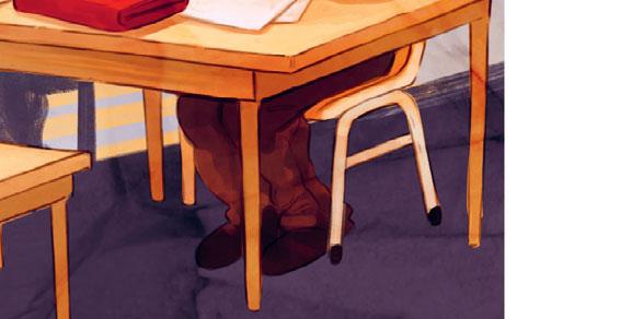 Omar øver og øver. Han ser ensom og lei seg ut.
