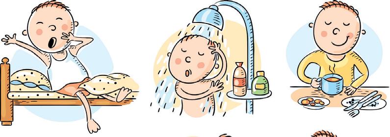 1 a Når gjør du hva? Sett ring rundt det du gjør hver morgen før du drar på skolen.